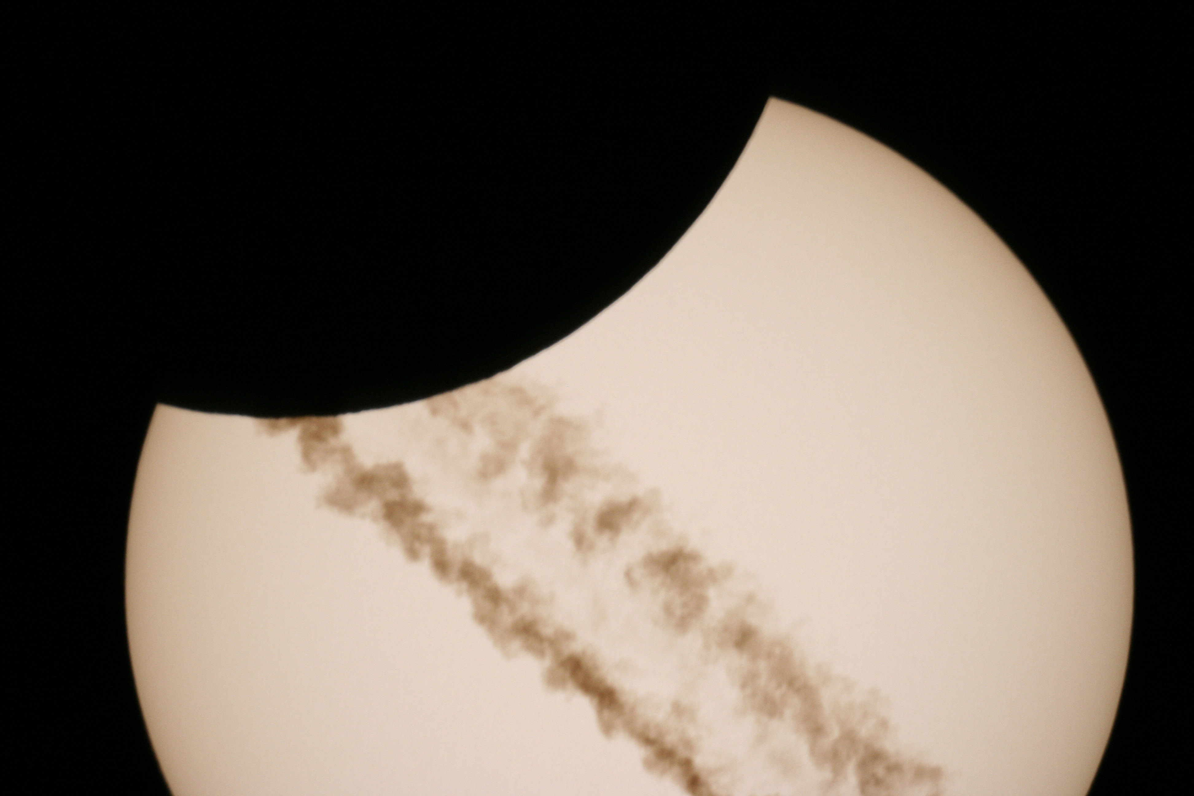 Leserbilder Astronomie: Sonnenfinsternis mit Kondensstreifen