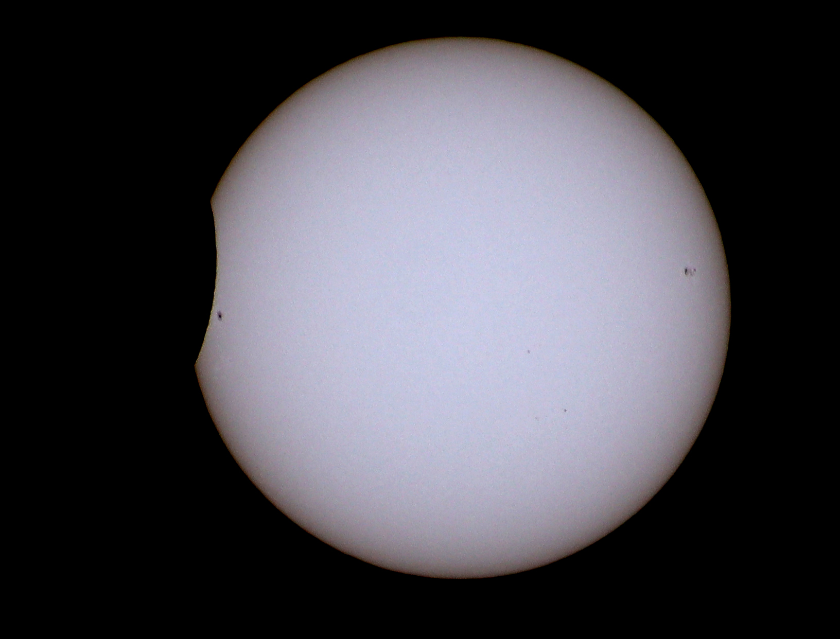 Als die Bedeckung wieder abnahm, kam ein Sonnenfleck zum Vorschein.