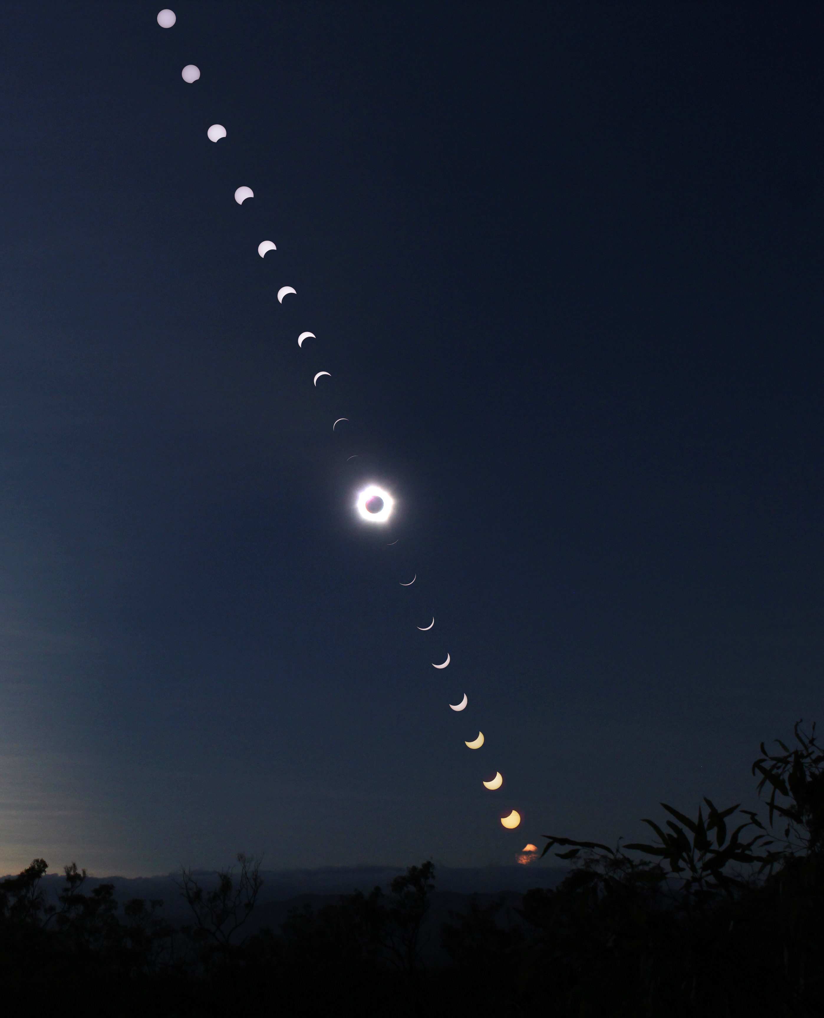 Verlauf der totalen Sonnenfinsternis in Australien am 14.11.2012; beobachtet am Palmer River Roadhouse.