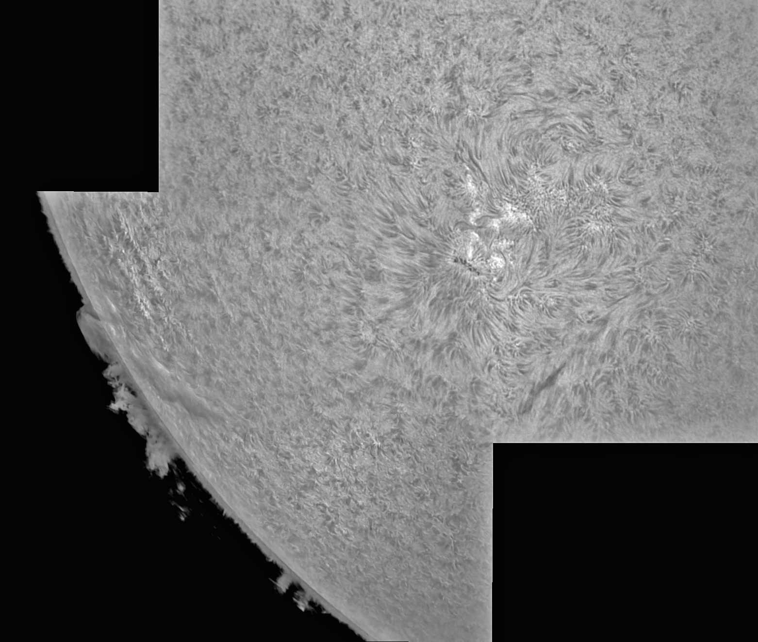 Zwei Wolkenlücken – jeweils eine für den AR 2687 und eine für das Filament. Mehr Mosaik ging nicht. Aber bei der derzeitigen Wetterlage ist das ja schon ein Highlight, wenigstens etwas zustande zu bringen.