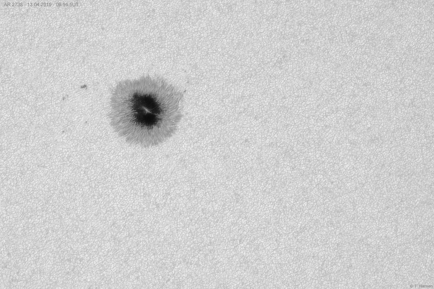 Leserbilder Astronomie: Sonnenfleck AR 2738 am 13. April 2019