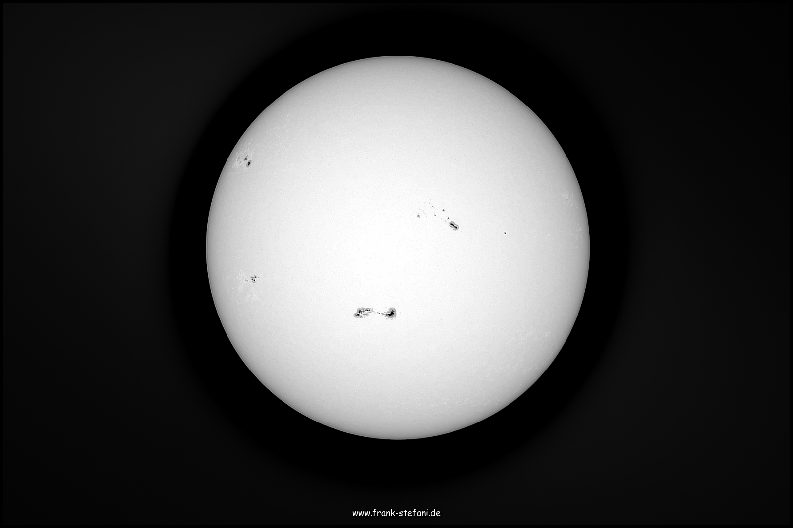Ziemlich genau 24 Stunden nach dem gestrigen Foto (siehe: https://bit.ly/3IvoBaR) lässt sich gut die Weiterentwicklung der Sonnenflecke in den Aktiven Regionen AR3046 bis AR3057 beobachten. Gut erkennbar wird dadurch auch die Eigenrotation der Sonne, die sich als Gasball an ihrem Äquator schneller dreht als an ihren Polen: Durchschnittlich wird für die Region etwa +/-26° heliografischer Breite, in der Sonnenflecke häufig auftreten, von gut 25 Tagen Dauer für eine Rotation aus gegangen.