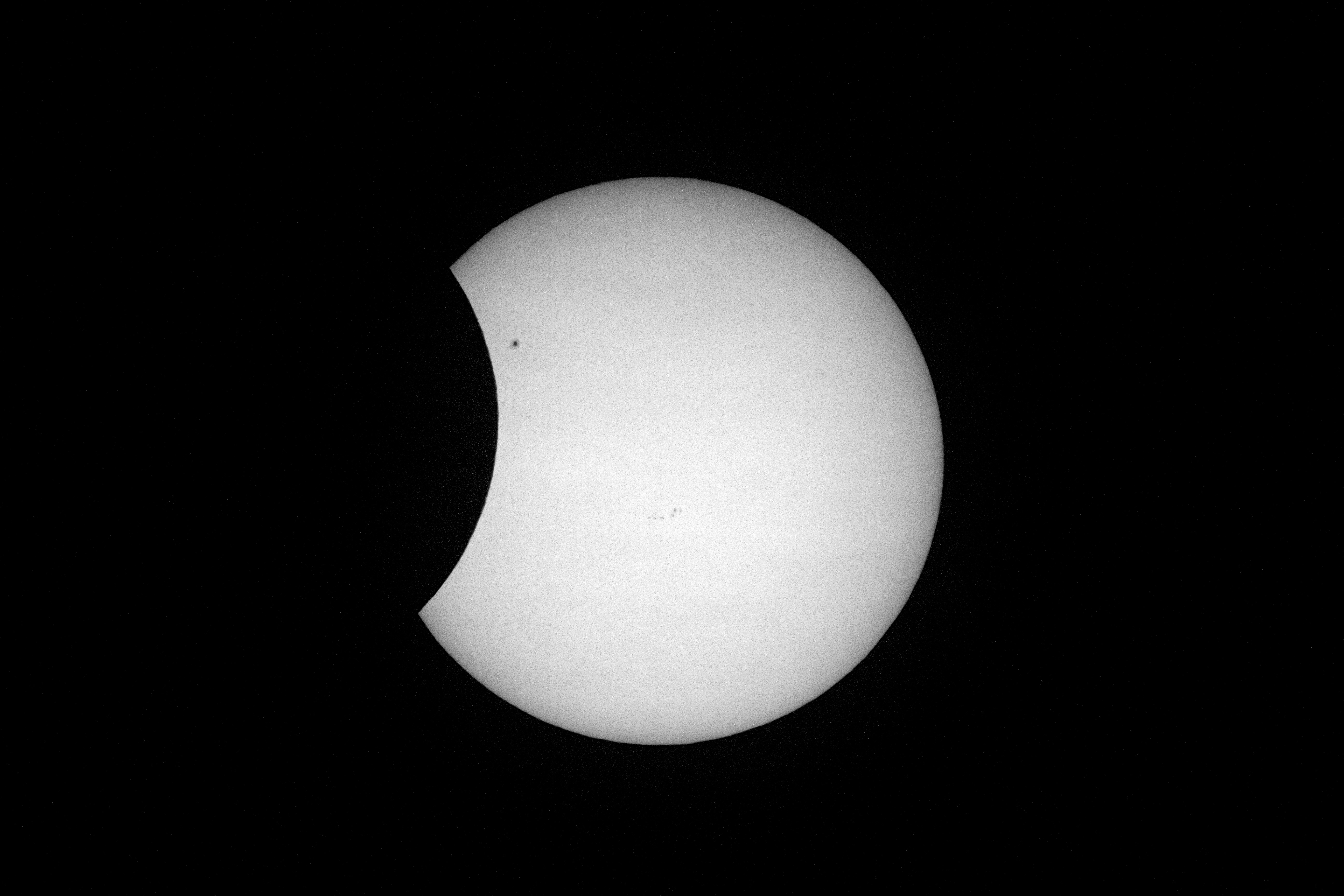 Der Mond wanderte immer weiter östlich, die Wolken wurden immer weniger. Erst tauchte eine Gruppen von Sonnenflecken auf, dann ein einzelner Fleck.