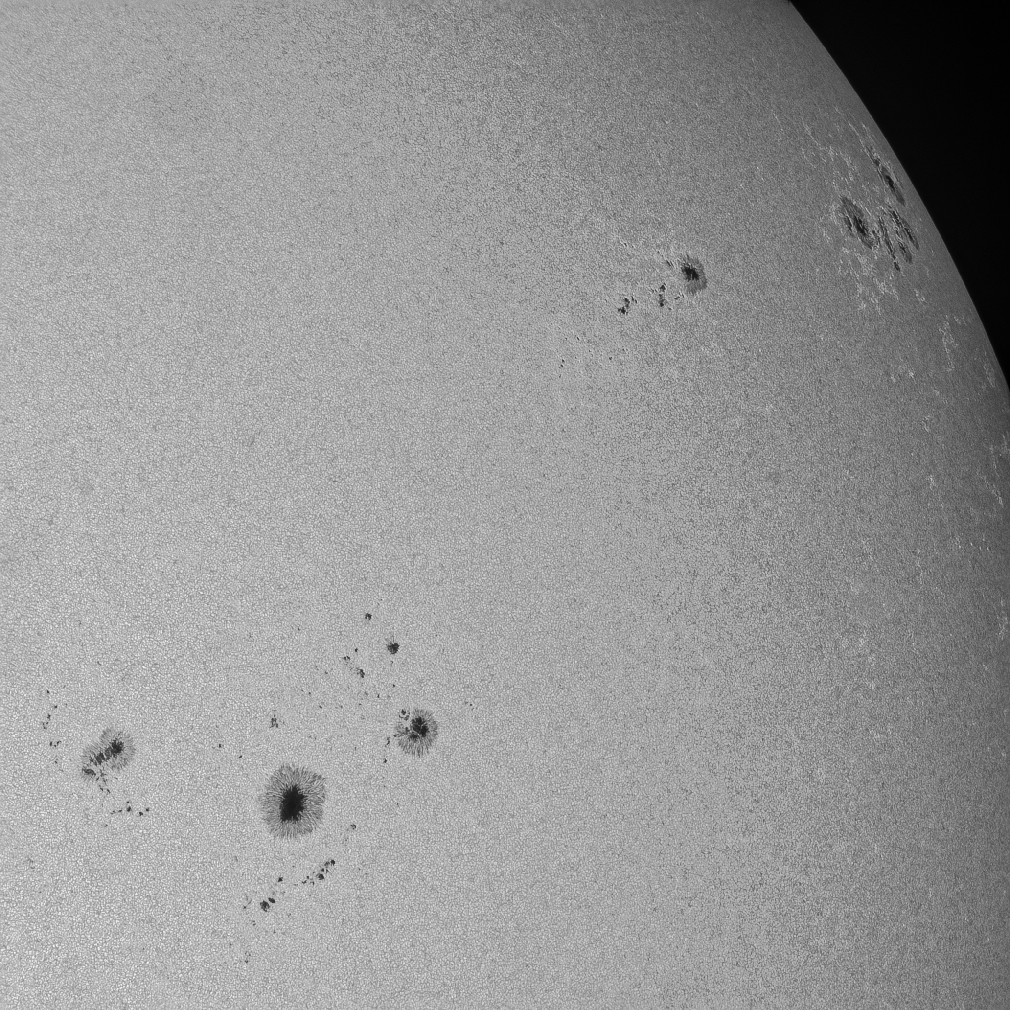 Sonnenfleckengruppen im westlichen Bereich der Sonne. Die Durchsicht war leider nicht optimal, denn Schleierwolken zogen durch.