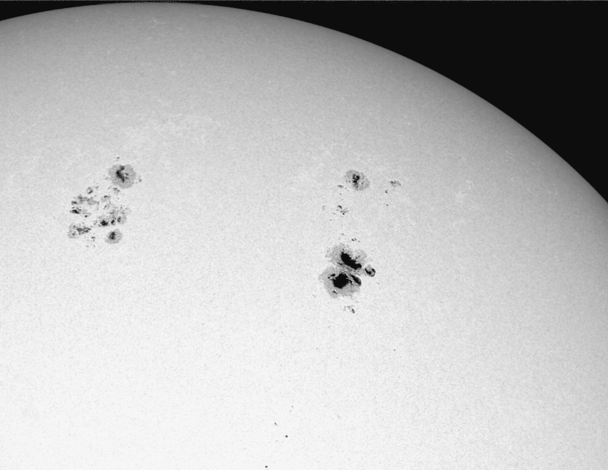 Das Bild zeigt die Flecken Nr. 1967, 1972 und 1968. Leider war das Seeing nur mäßig - im Winter steht die Sonne eben doch recht tief.