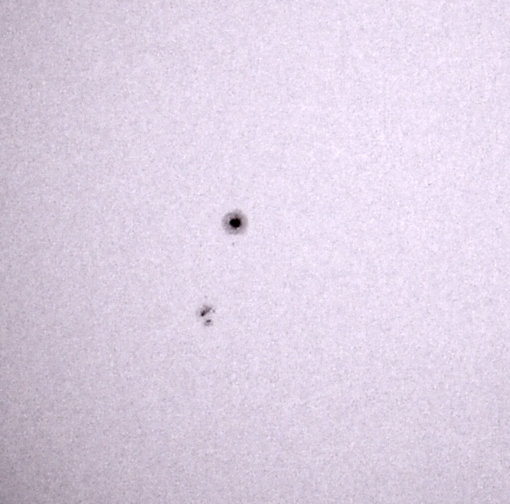 Sonnenflecken am 10. August 2014. Die Aufnahme entstand als Einzelaufnahme mit einer DSLR (Nikon D7100) und einem Refraktor mit nur 480 Millimeter Brennweite sowie einem Baader Astrosolar Filter.