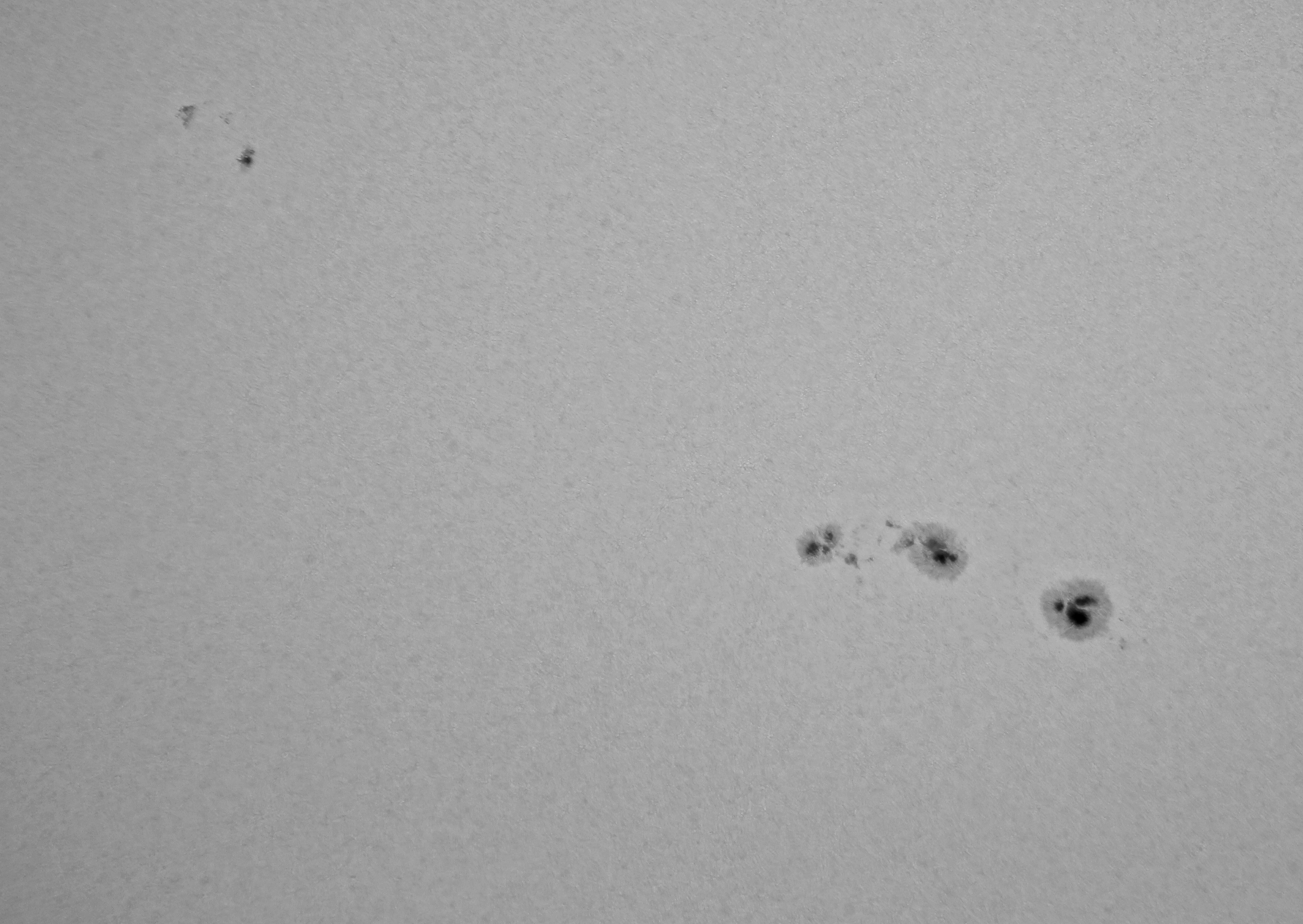Nachdem längere Zeit gar keine Flecken sichtbar waren und anschließend Schlechtwetter den Blick zur Sonne verhinderte, wurde ich mit diesen schön strukturierten Flecken für meine Geduld belohnt.