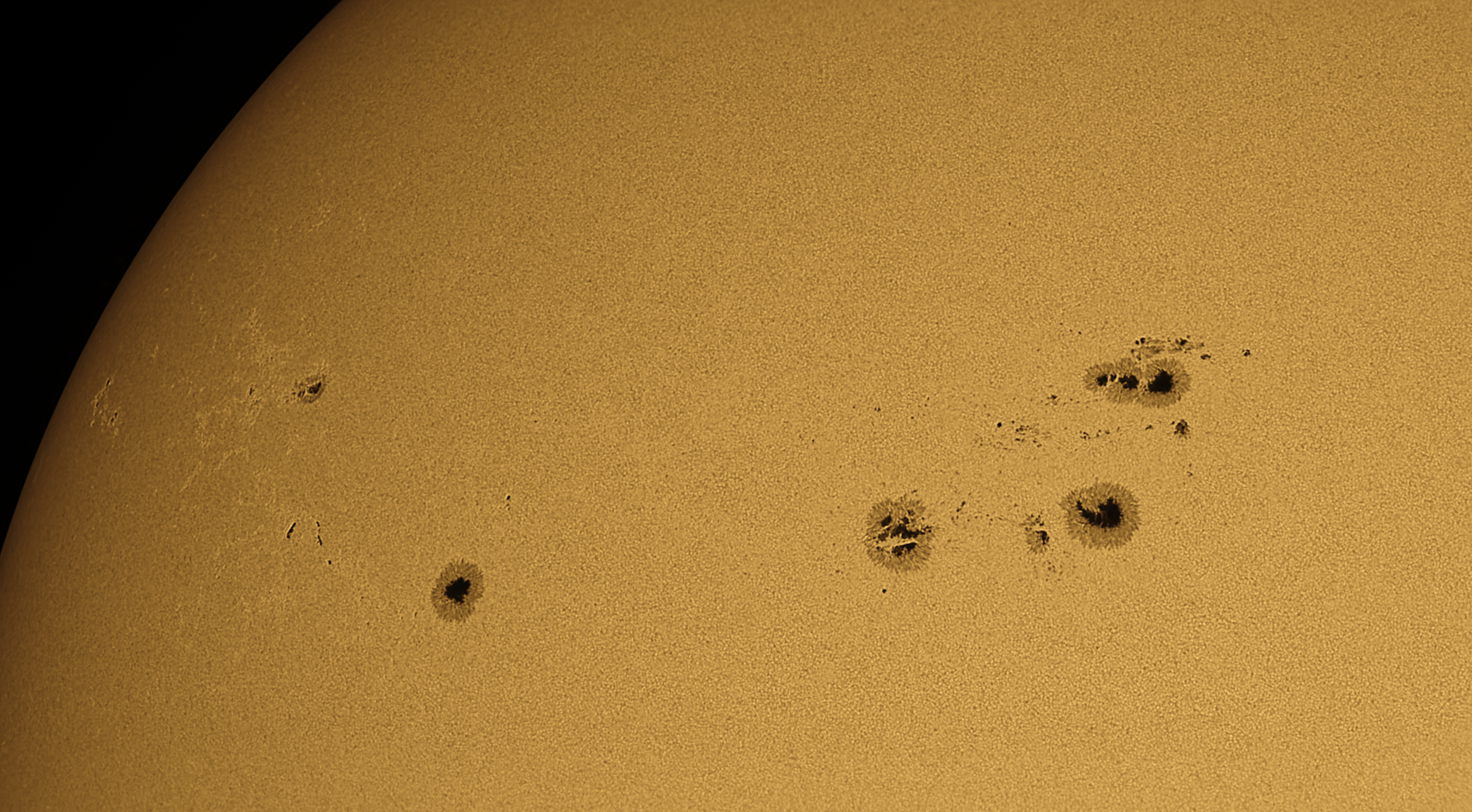 Die im Moment aktivsten Regionen auf der Sonne. Als Filter diente ein Herschelkeil.