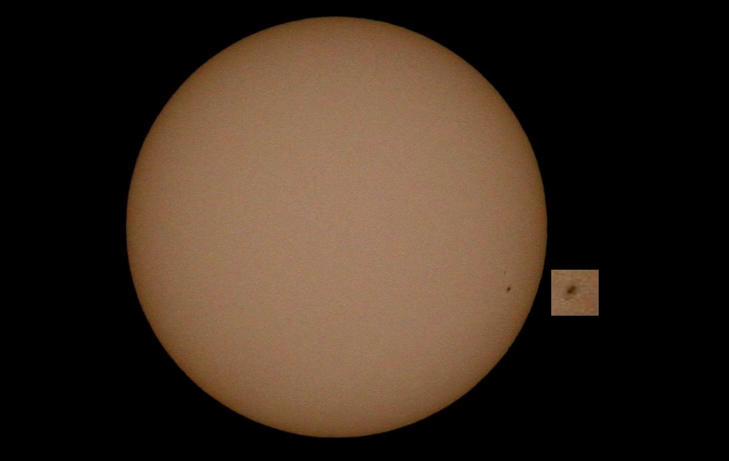 Freitag 15 Uhr, plötzlich schaute die Sonne zwischen den Wolken hervor. Bereitgelegte Kamera und Sonnenfilter geholt. Acht Bilder gemacht und dann war es wieder vorbei. Sonne nie ohne Filter aufnehmen. Mehr auf: https://www.foto-literatur-planet.eu/astofotos-direkt/