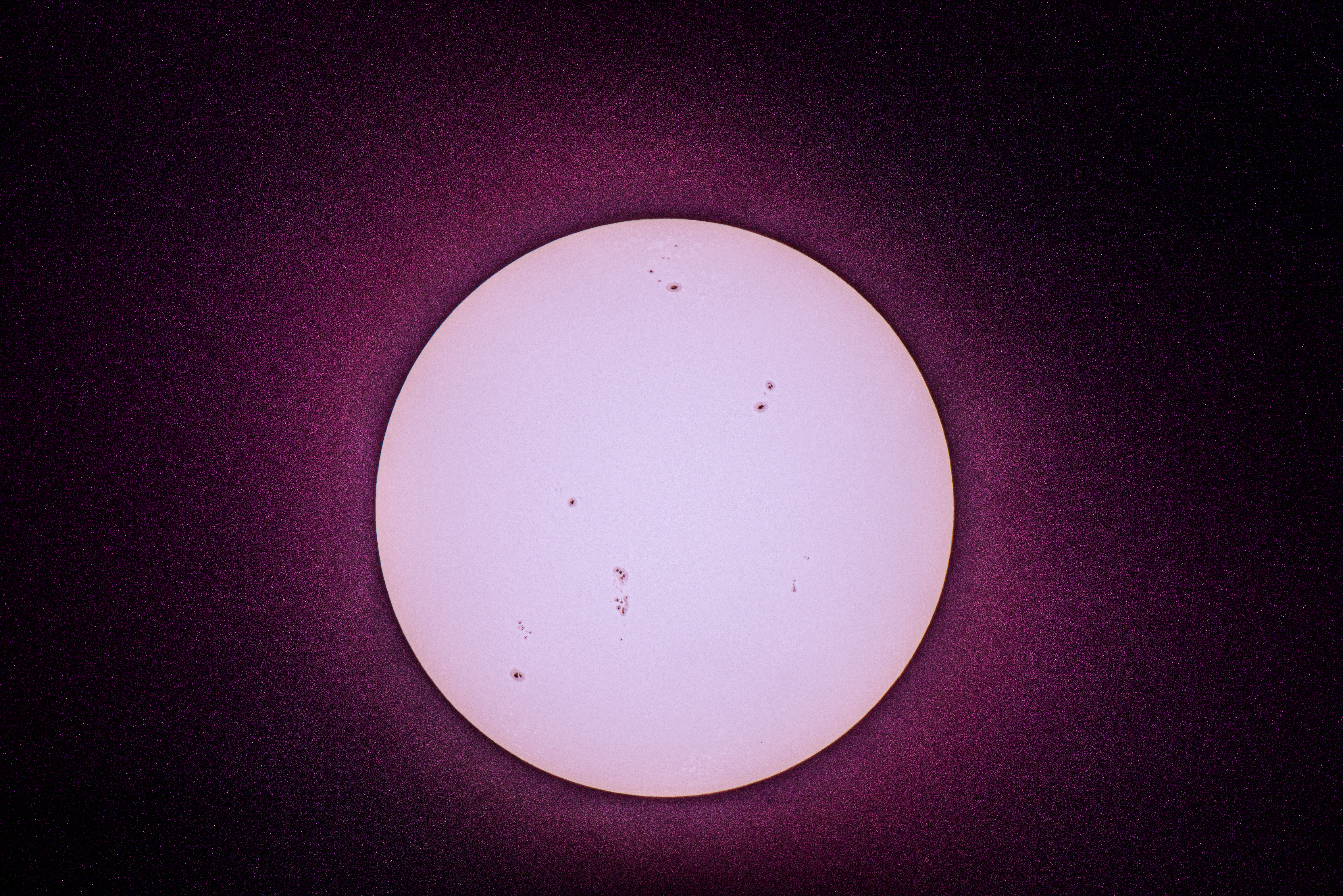 Mein erstes Foto von der Sonne. Eigentlich war ein Test mit meiner Nikon 810 und dem Refraktor vorgesehen.