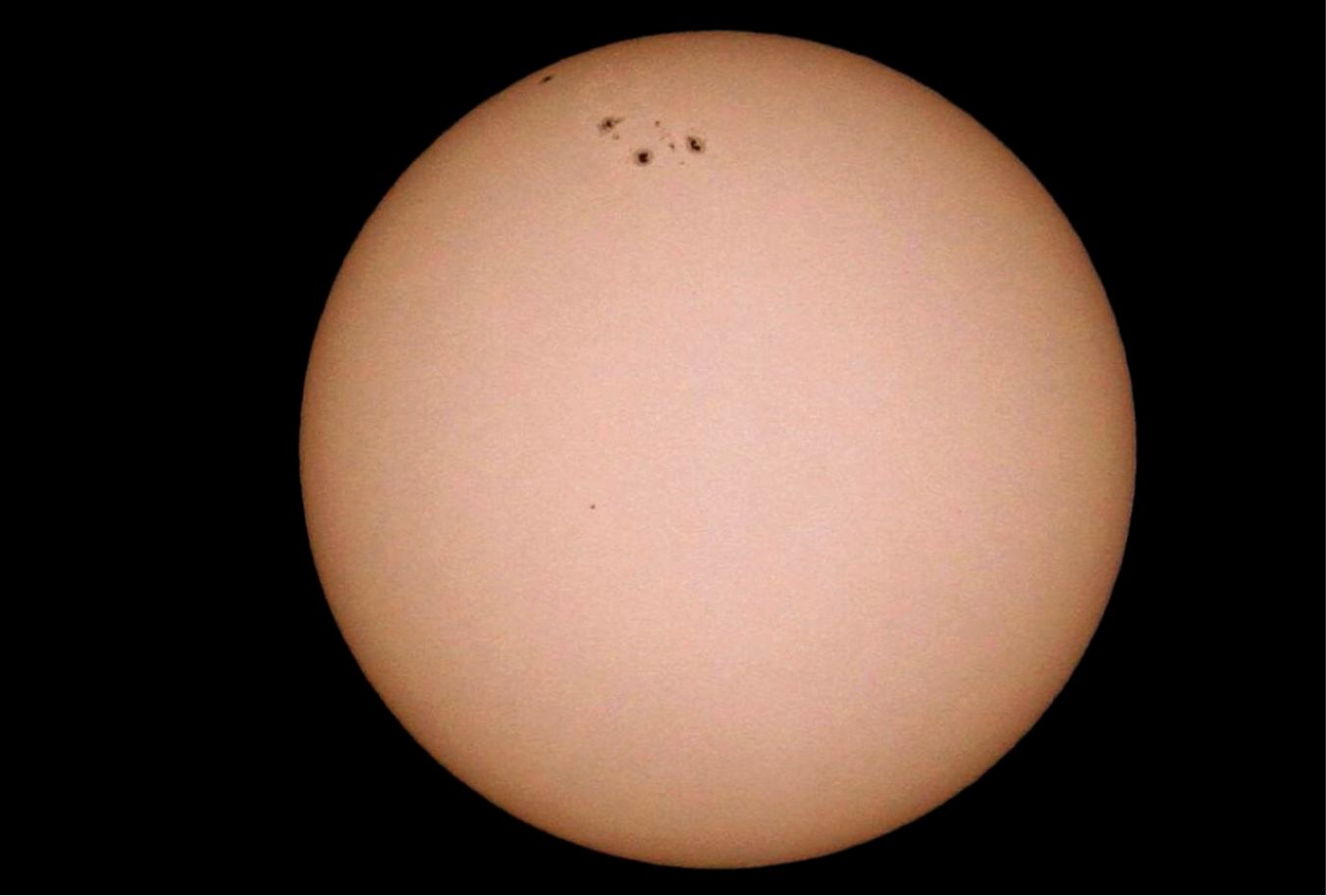 Dienstag, 15 Uhr: Die Sonne stand günstig zu unserem Haus. Kamera mit Sonnenfilter lagen schon bereit. Habe dann einige Sonnenbilder gemacht. Siehe auch www.foto-literatur-planet.eu/astofotos-direkt. Habe schon am Sonntag die Sonnenflecken fotografiert, aber heute standen sie besser.