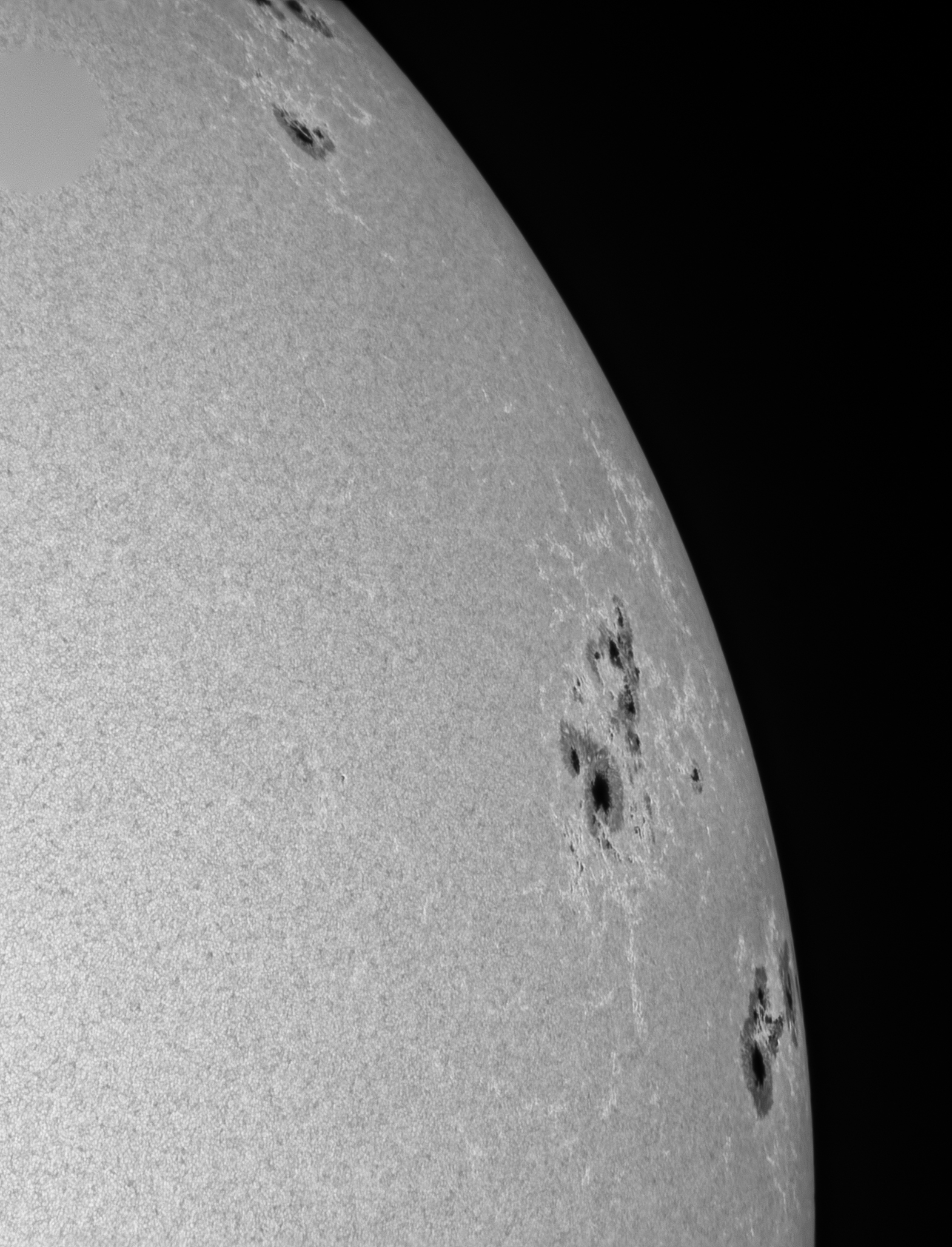 Sonnenfleckengruppen im Weißlicht waren heute wieder einmal nur kurz zwischen den Wolken zu beobachten. (3712, 3713, 3716)