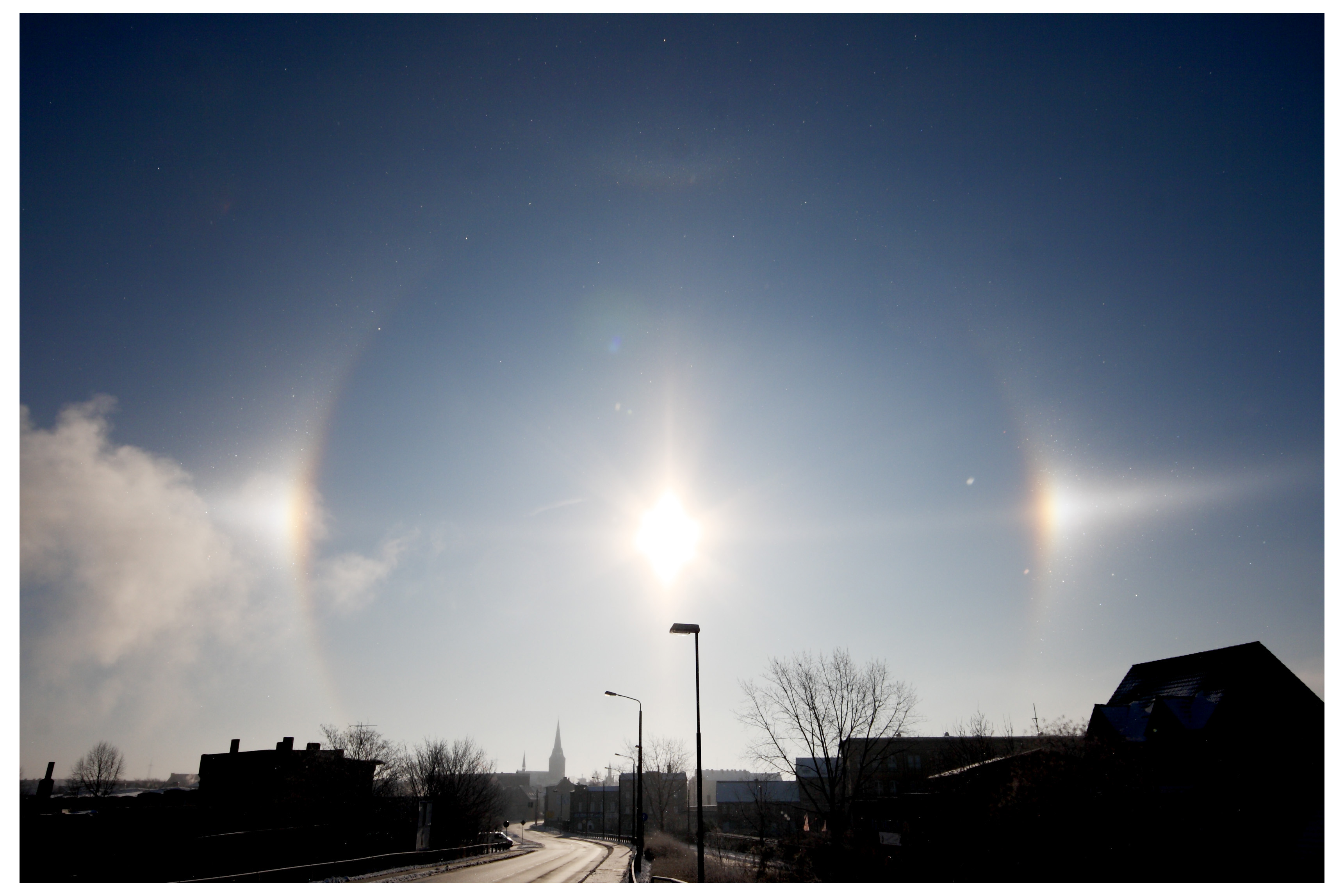 Frühaufsteher konnten am Sonntag den 7.3.2010 über Bitterfeld eine bemerkenswerte und außergewöhnliche Erscheinung in der Atmosphäre beobachten. Ein prächtiger Halo umgab die morgendliche Sonne.