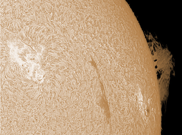 Hier sieht man fast alles, was die Sonne zu bieten hat; Protuberanz - Fleckengruppe AR3055 - Aktive Regionen - Filament!