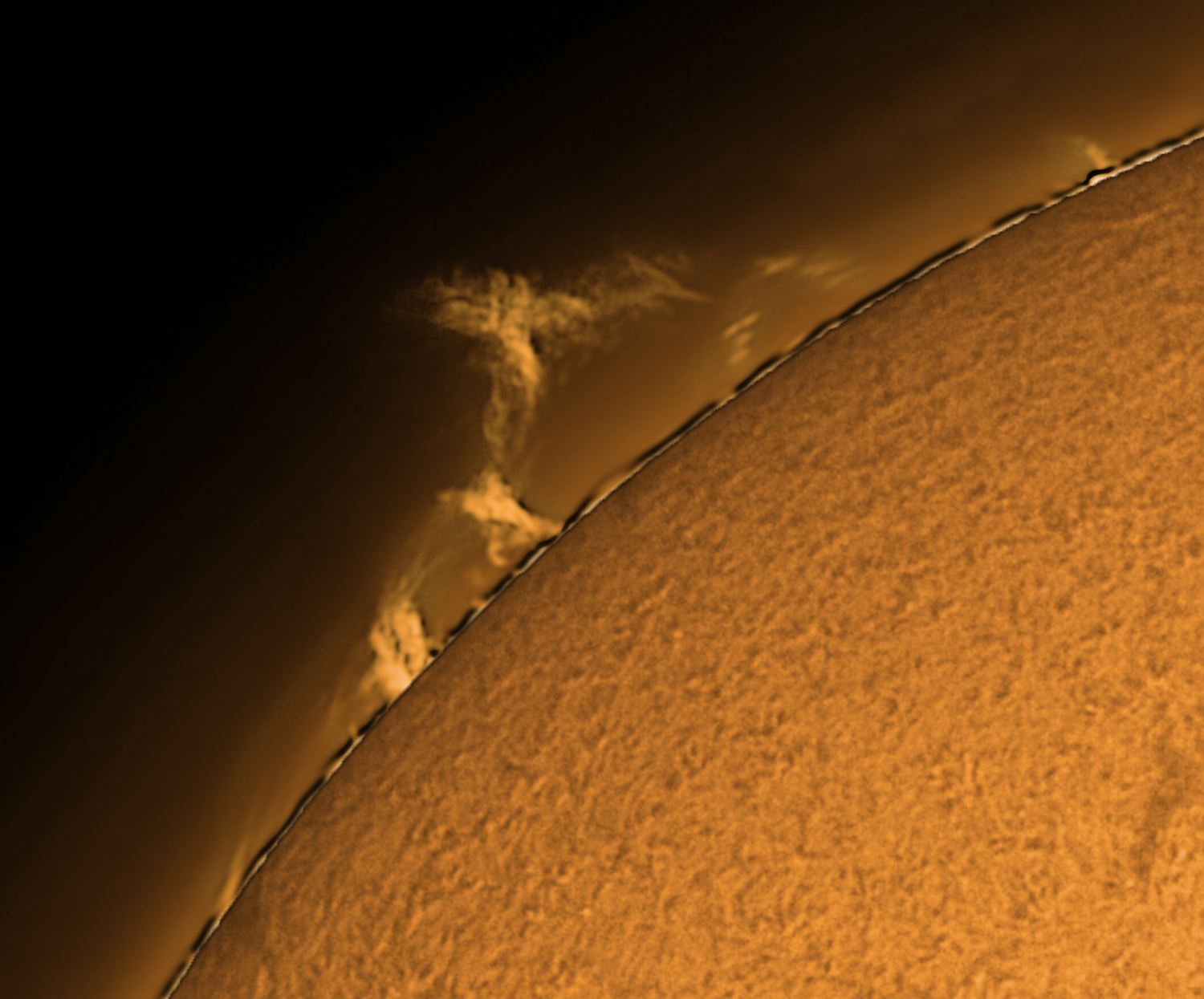 Die kleine aber schön geformte Prozuberanz im Nordosten der Sonne. Stack aus Avi,