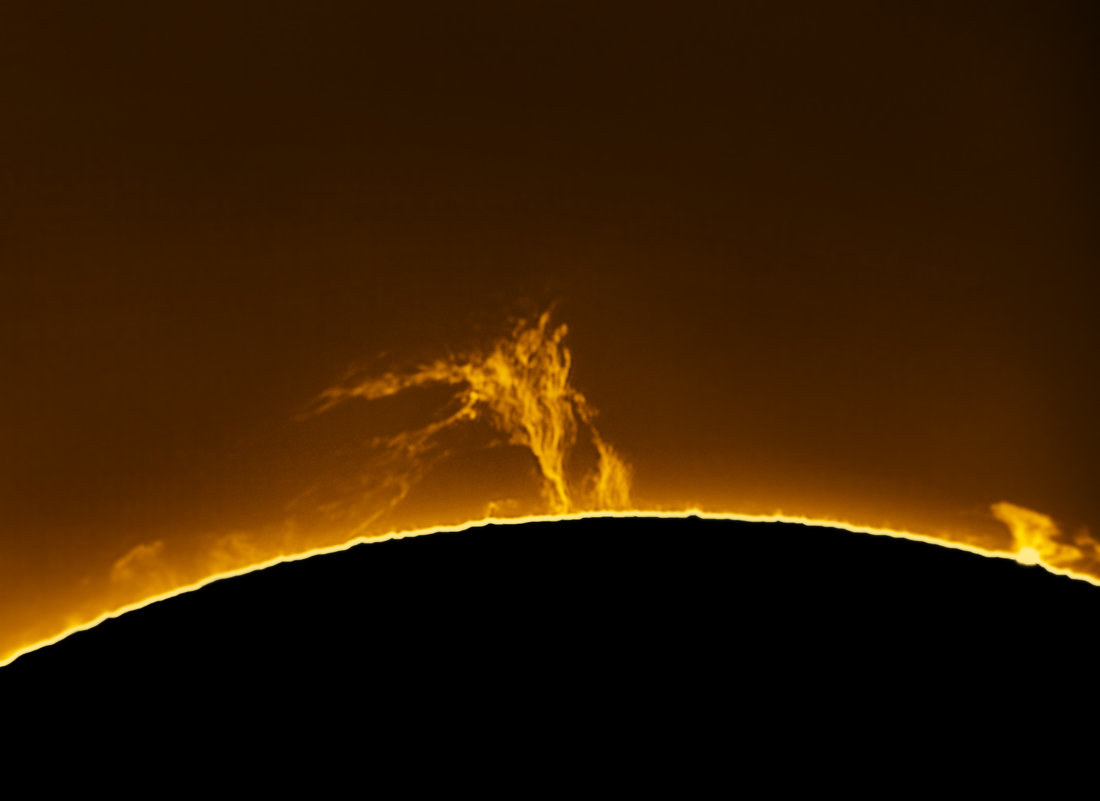 Für kurze Zeit zeigte sich diese schöne Protuberanz am Westrand der Sonne. Zwei Stunden später waren nur noch letzte Resten davon auszumachen.