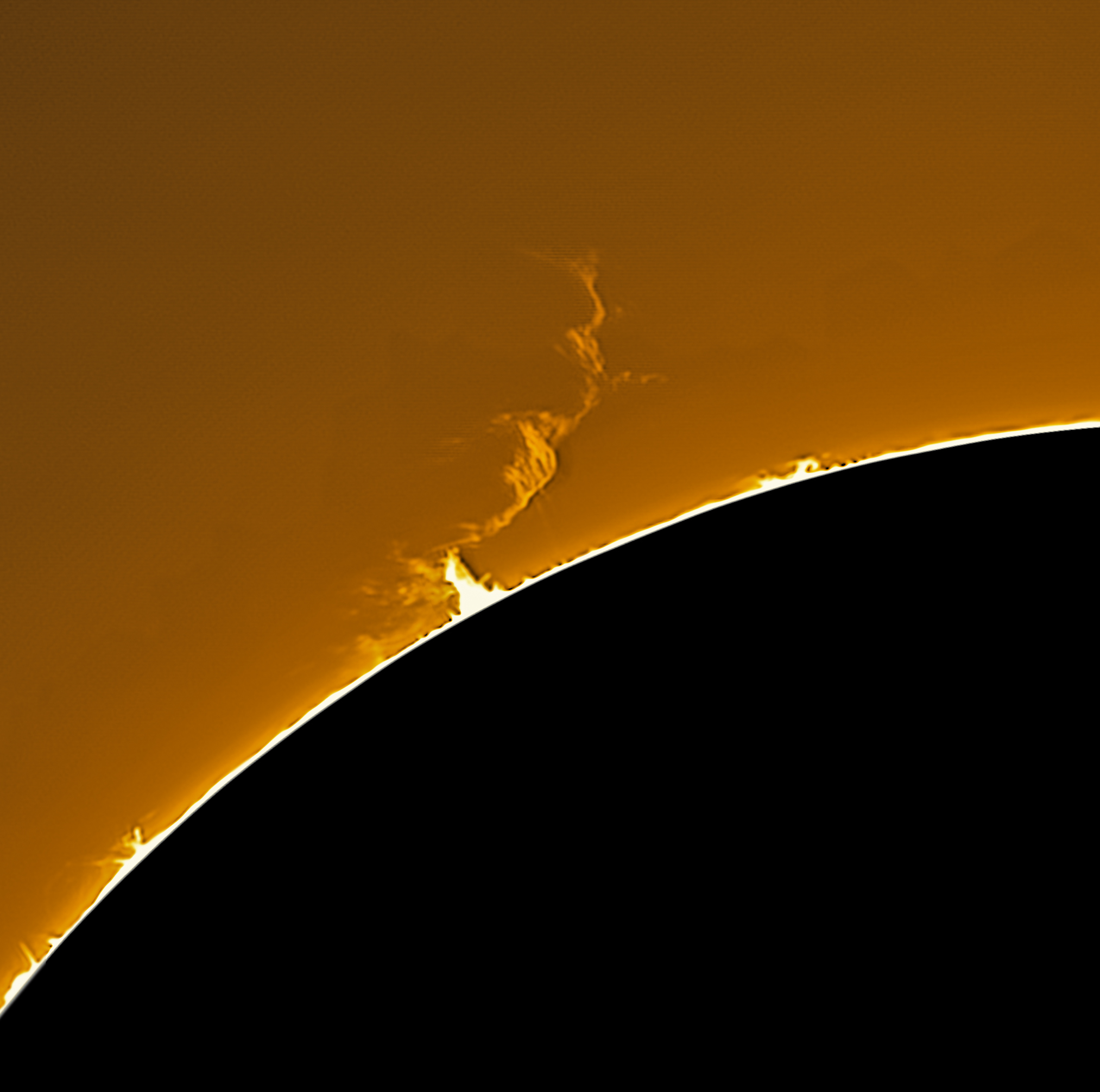 Protuberanz mit ungewohnter Form. Erinnert mich an einen Blitz.