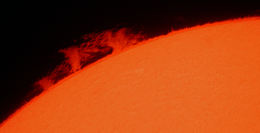 Auf der gegenüberliegenden Seite der Sonne (vergleiche voriges Bild) erschien dann diese Protuberanz. Des angenehmeren Anblicks wegen (mir geht es zumindest so) habe ich das Bild gedreht. Die "genauen" Leser mögen mir das bitte verzeihen...