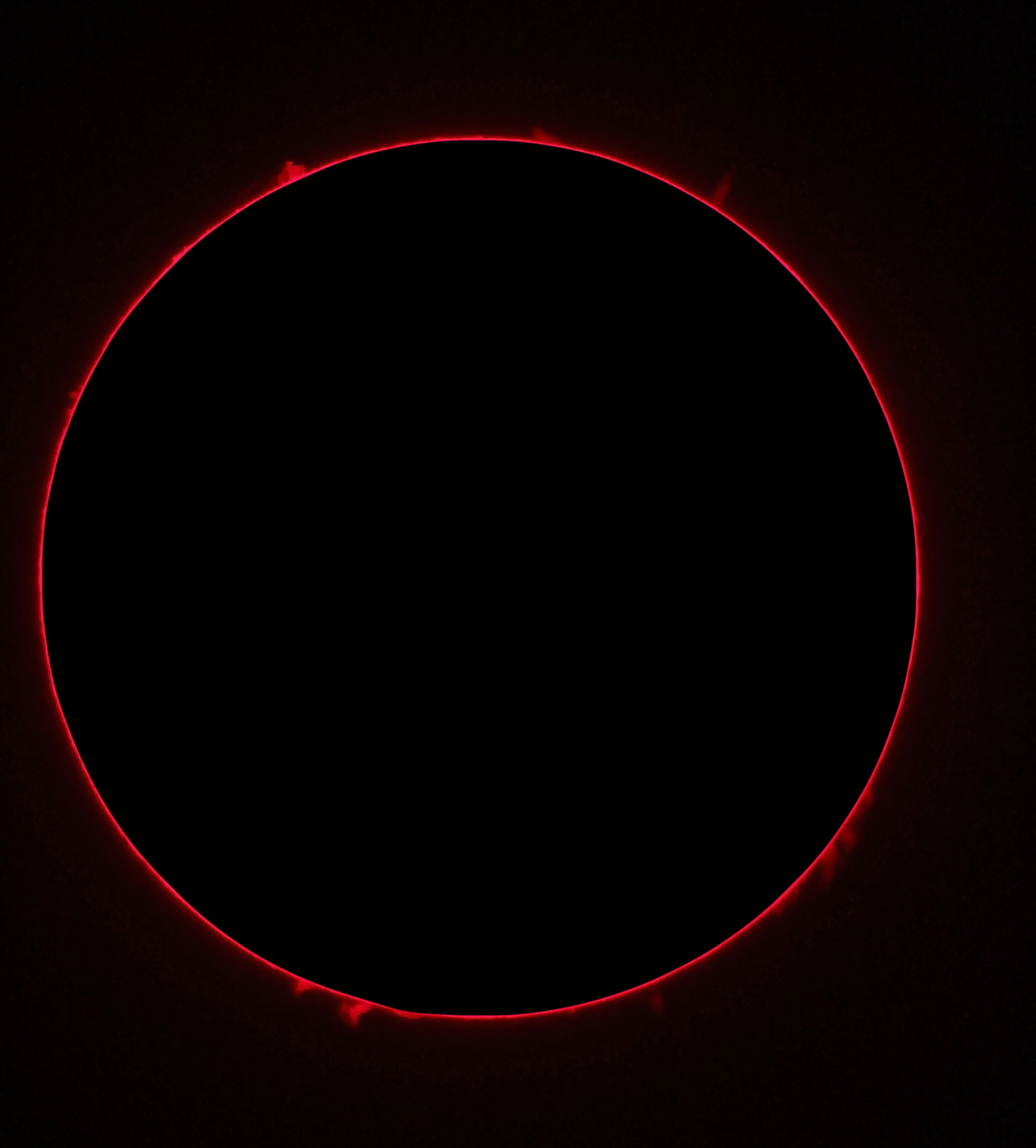 Obwohl die Sonne im Weisslicht sehr ruhig erscheint, ist im H-Alpha-Licht am Sonnenrand einiges zu sehen gewesen. Die Sonne wurde mit Photoshop abgedeckt