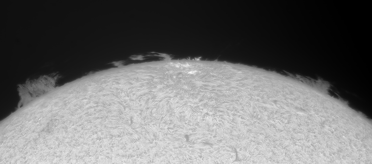 An diesem Tag versuchte ich mal ein neues Setup und montierte das Etalon des 60-mm-Lunt Teleskops (Brennweite 500 mm) an den Refraktor mit 1000 mm Brennweite. Bin sowohl visuell als auch fotografisch sehr zufrieden!