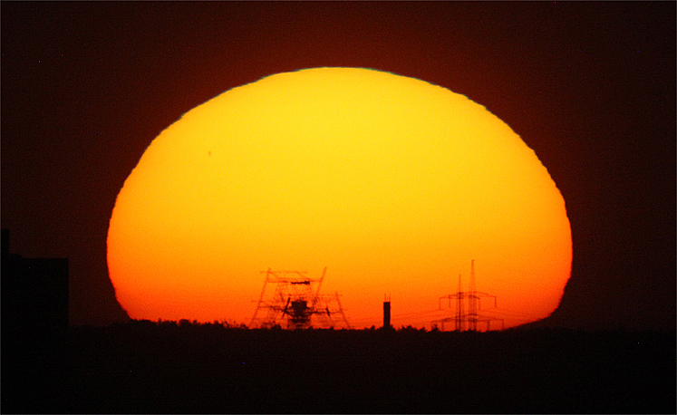 Wenn das Wetter mitspielt, kann von meiner Wohnung aus der Sonnenuntergang vor der Antennenanlage der Großfunkstelle Nauen in knapp 30 Kilometer Entfernung beobachtet werden – jeweils Anfang Mai und Anfang August.