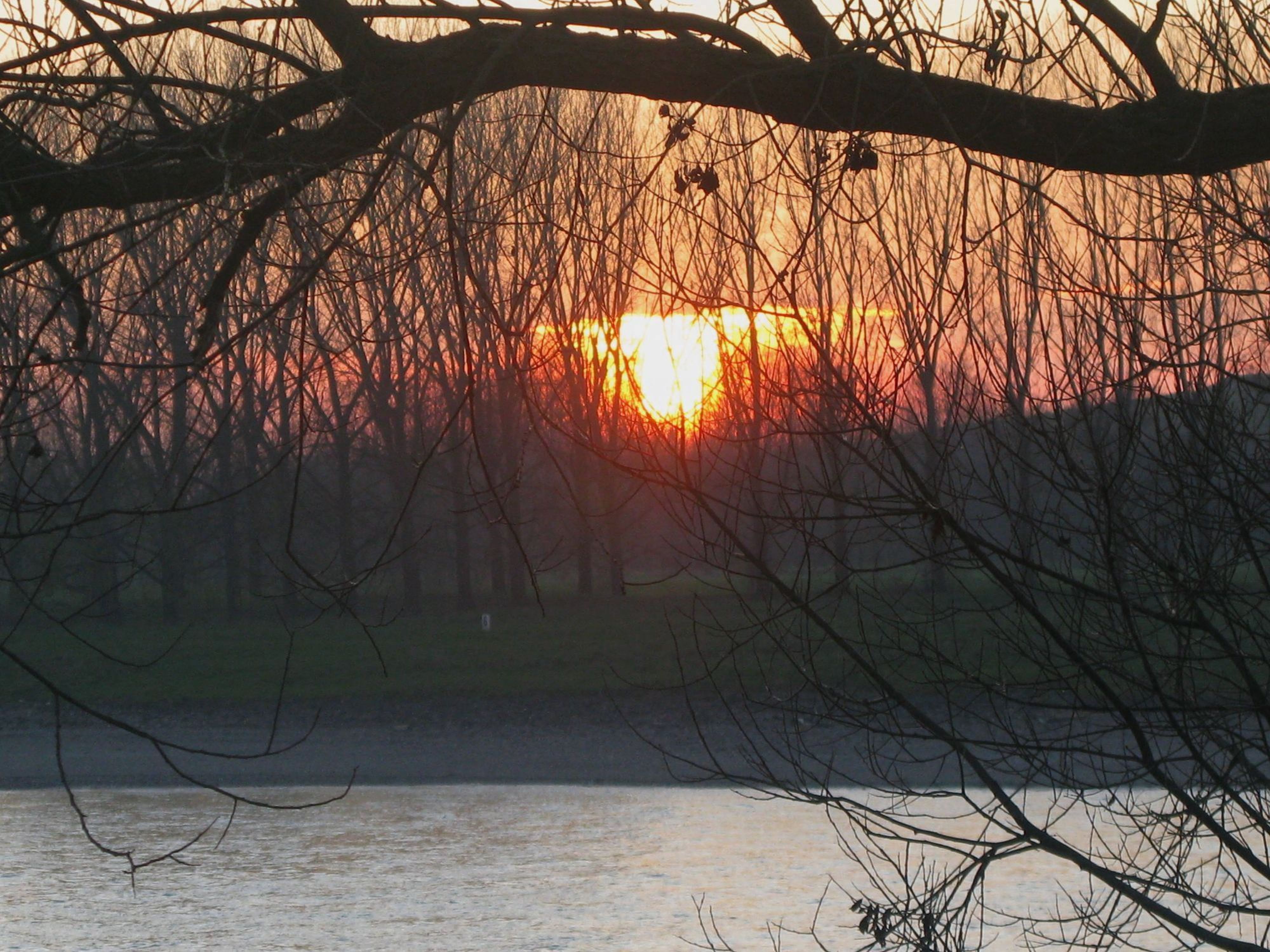 Abendspaziergang am Rhein. Die Kamera hatte ich dabei, um die Wildgänse bei uns aufzunehmen. Dann sah ich die Sonne kurz vor ihrem Verschwinden unter dem Horizont. 3 Bilder, dann war sie weg. Dieses Bild wurde mit