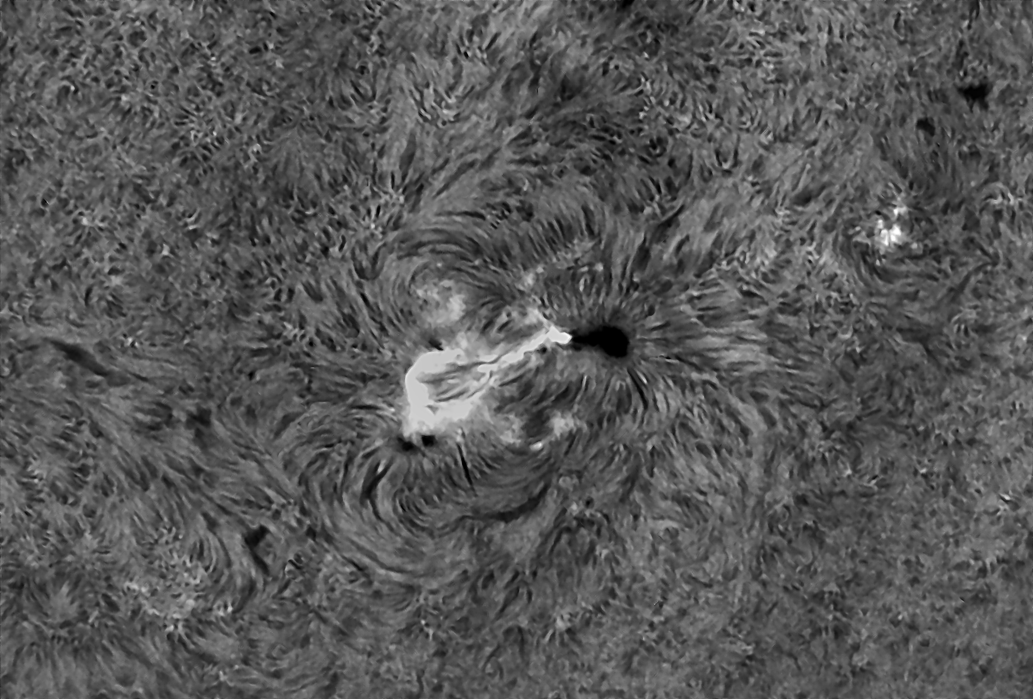 Außer dieser Fackel mit ihren begleitenden Flecken und Magnetfeldlinien war am 7.8. auf der Sonnenscheibe nicht viel los.