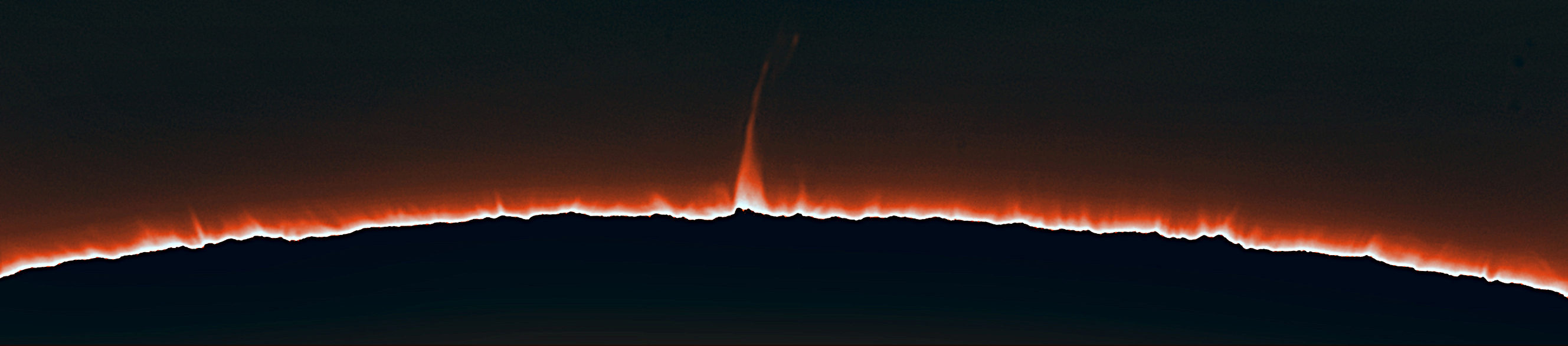 Die Stoppeln am Sonnenrand sind so genannte Spikulen. Was Spikulen sind, wissen wir erst seit kaum 15 Jahren. Spikulen entstehen aus Schockwellen, die von Sonnenbeben ausgelöst werden. Sie transportieren Materie von der Sonnenoberfläche in ihre Atmosphäre, und zwar hundertmal soviel, wie die Sonne durch den Sonnenwind abgibt. Die durchschnittliche Lebensdauer einer Spikule liegt bei einigen Minuten. Spikulen werden erst bei langbrennweitigen Aufnahmen mit größeren Instrumenten sichtbar. Bei kleineren Instrumenten bilden sie einen dunklen Saum um die Sonne.