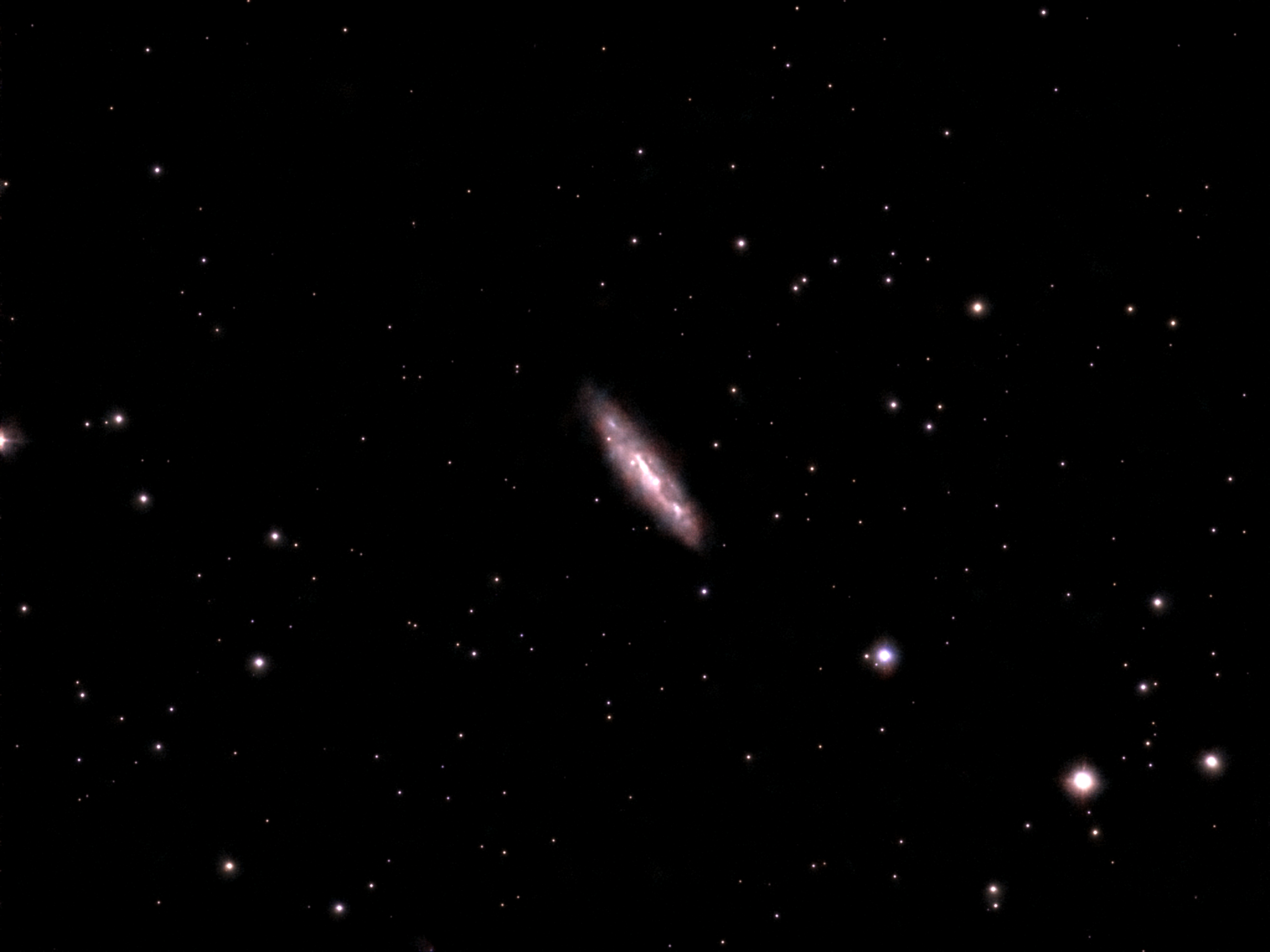 Nach einer langen Durststrecke ohne klare Nächte bot der 10. August endlich wieder einmal klare Sicht. Die hier mit 18 Minuten Belichtungszeit abgebildete Galaxie M 108 befindet sich im Sternbild Großer Bär und ist etwa 34 Millionen Lichtjahre entfernt.