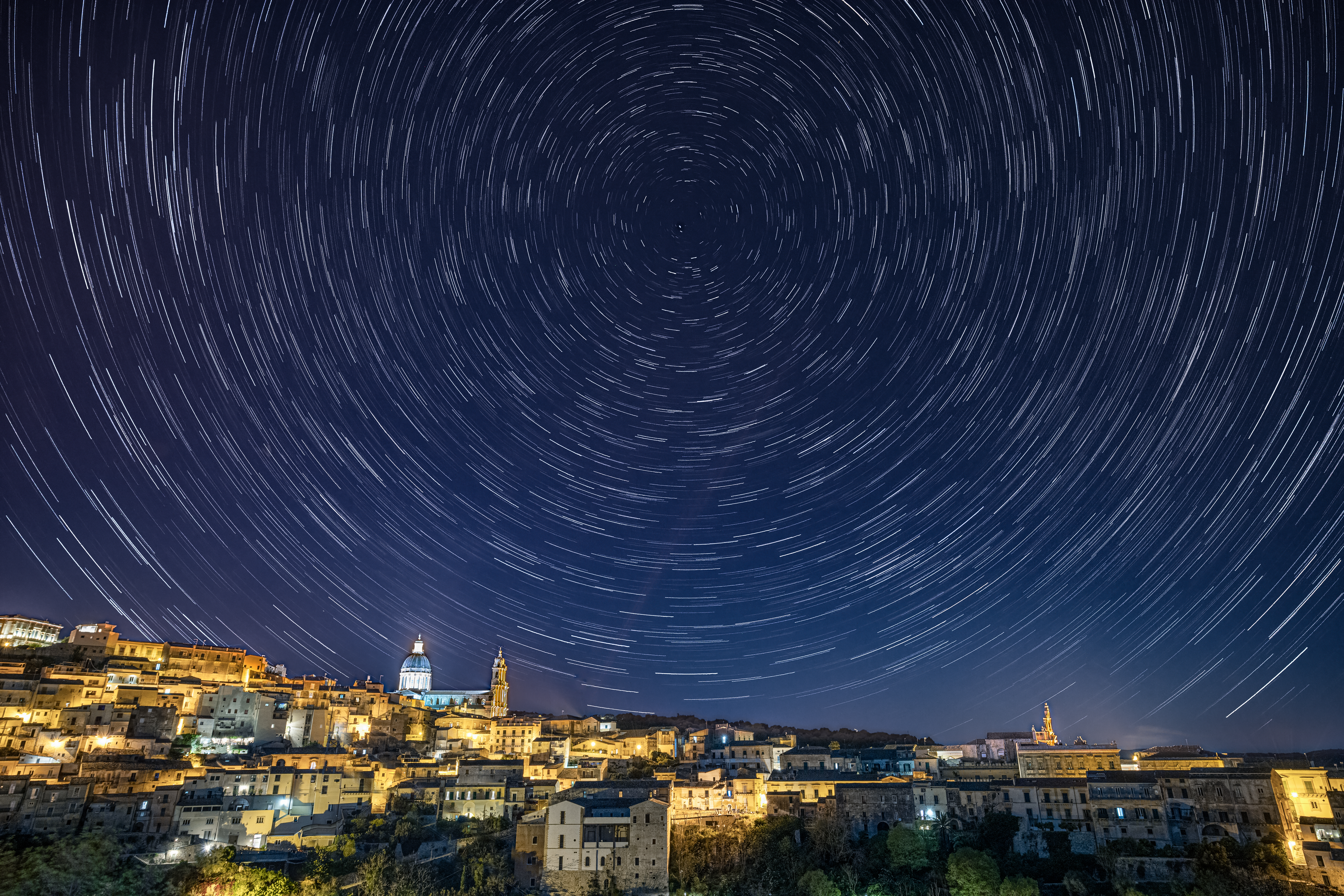 Leserbilder Astronomie: Star trails over the late baroque town of Ragusa Ibla