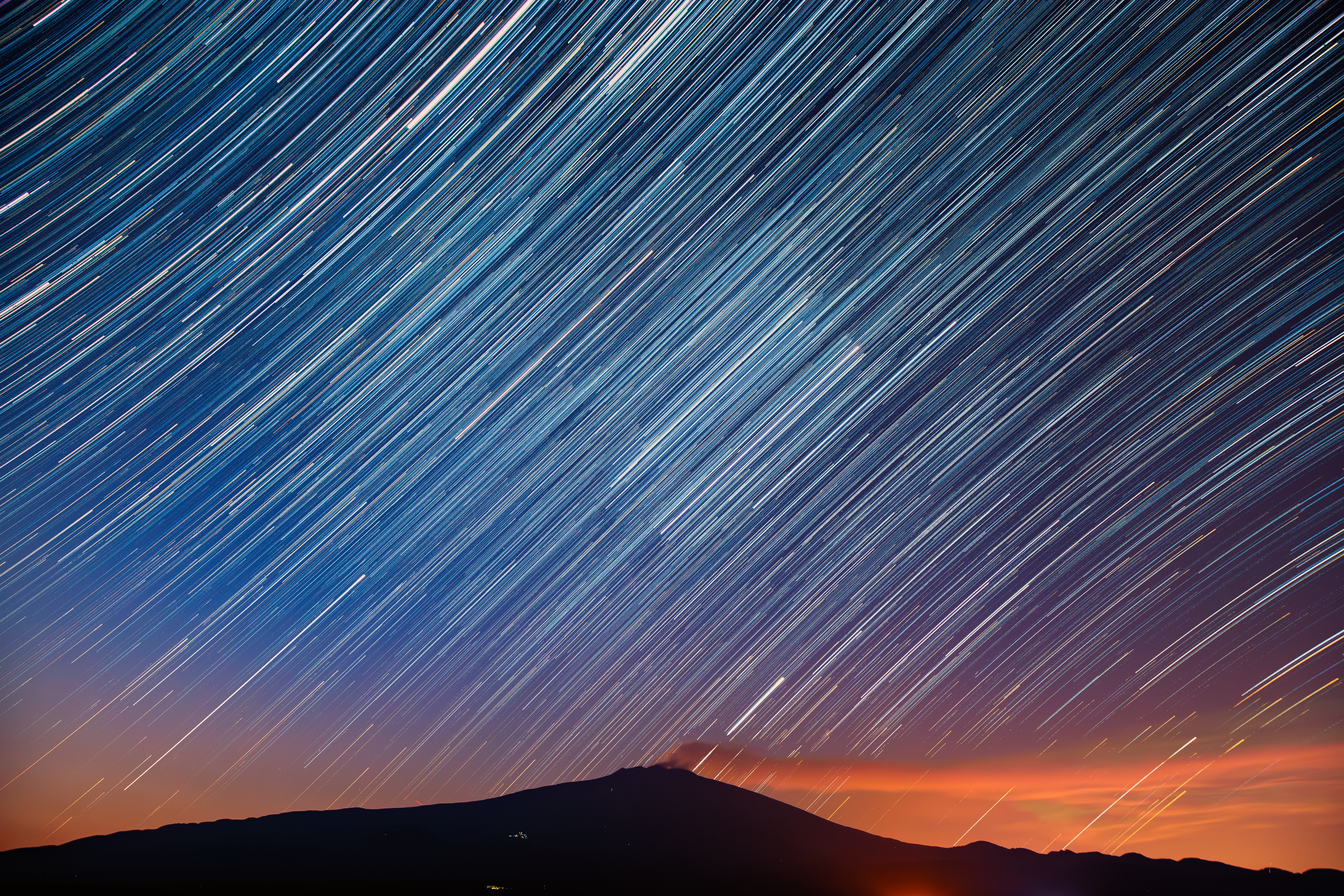 Colorful star trails over Etna