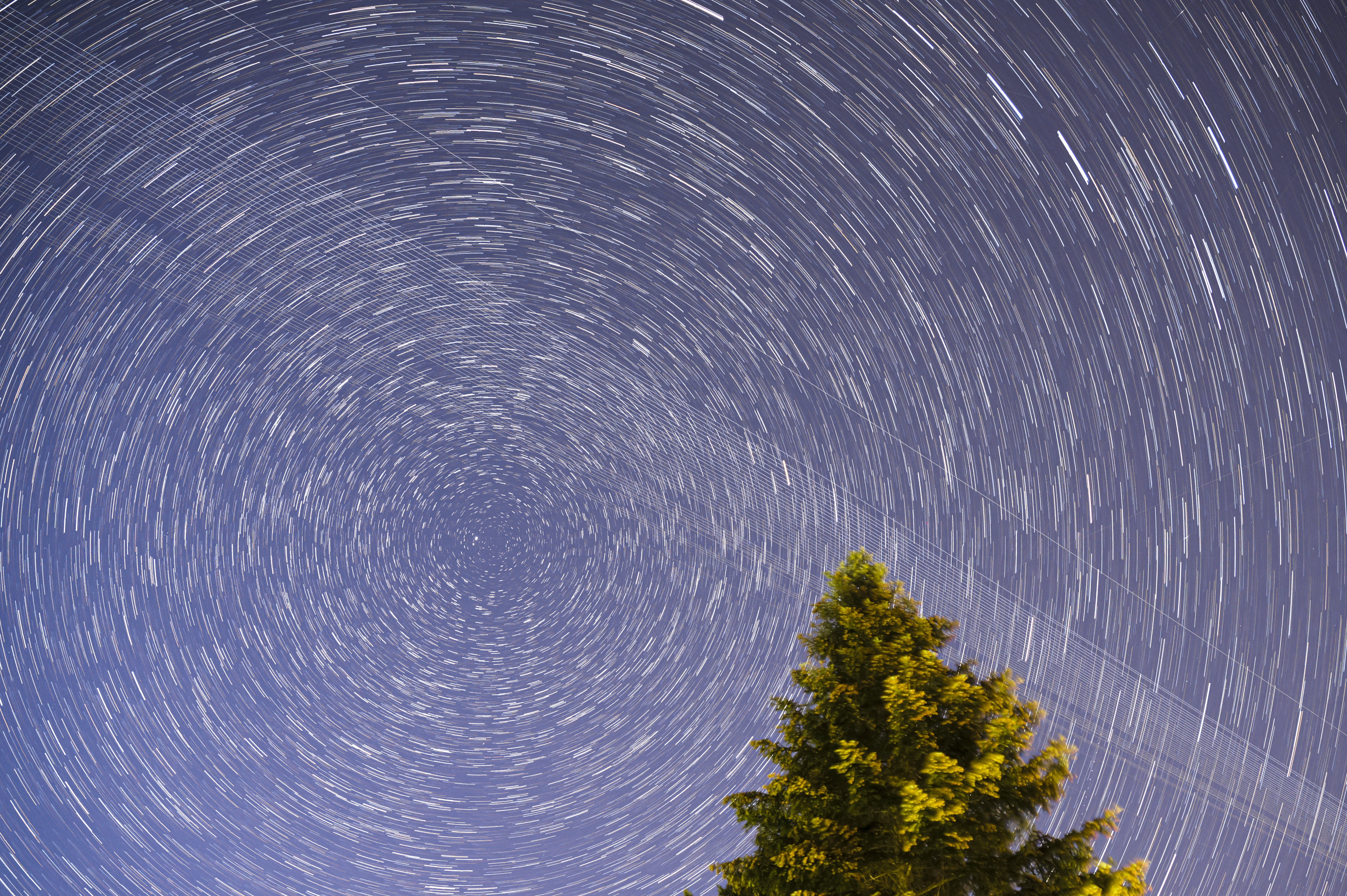Kurz vor dem Start der 7. Starlink Mission zogen vierzig der älteren Satelliten über den deutschen Himmel. Mit einer 17-minütigen Aufnahme (aus 34 30-sekündigen Einzelbildern) konnte ich sie vor dem Himmelsnordpol einfangen.