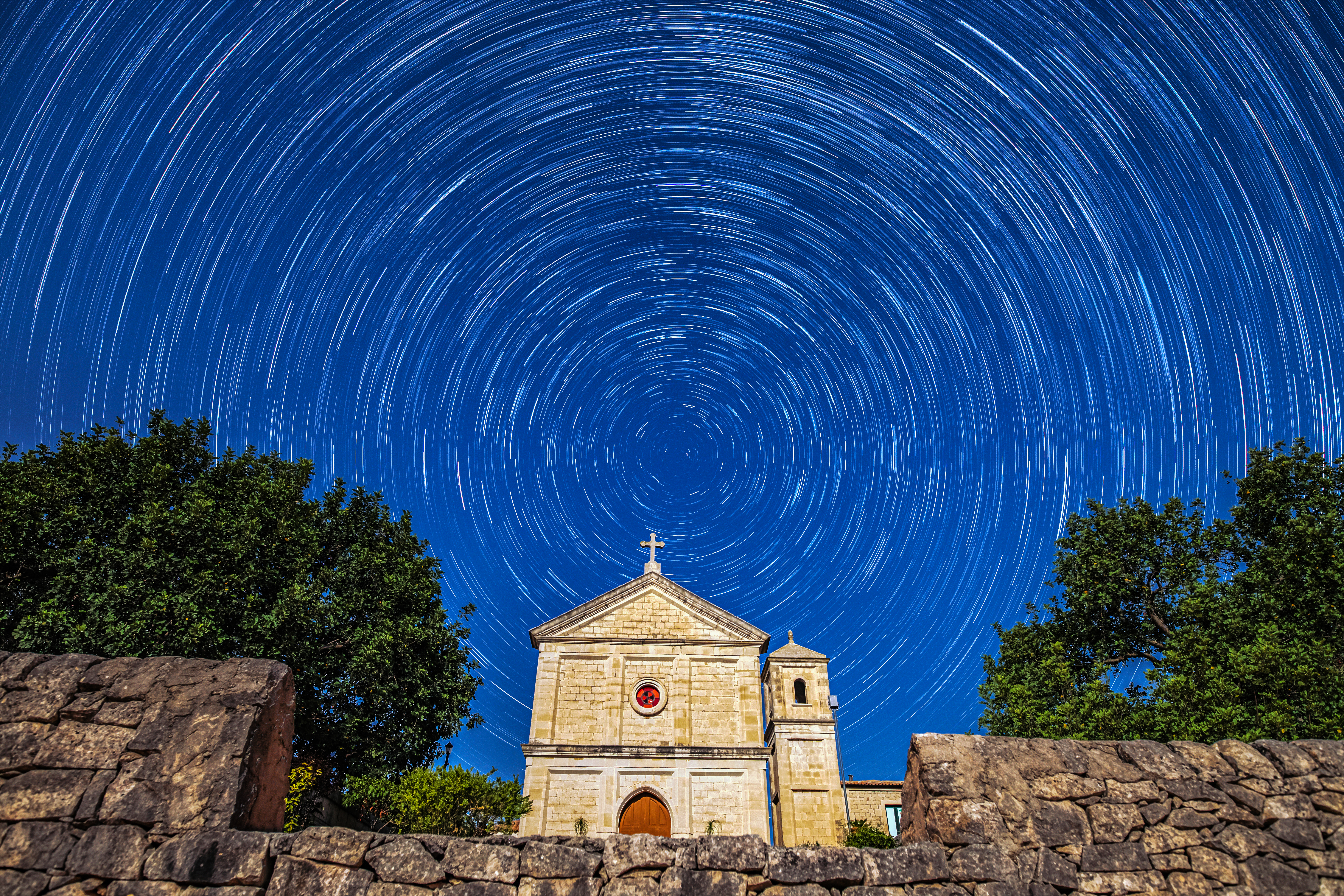 A STARTRAIL OVER A SICILIAN RURAL CHURCH