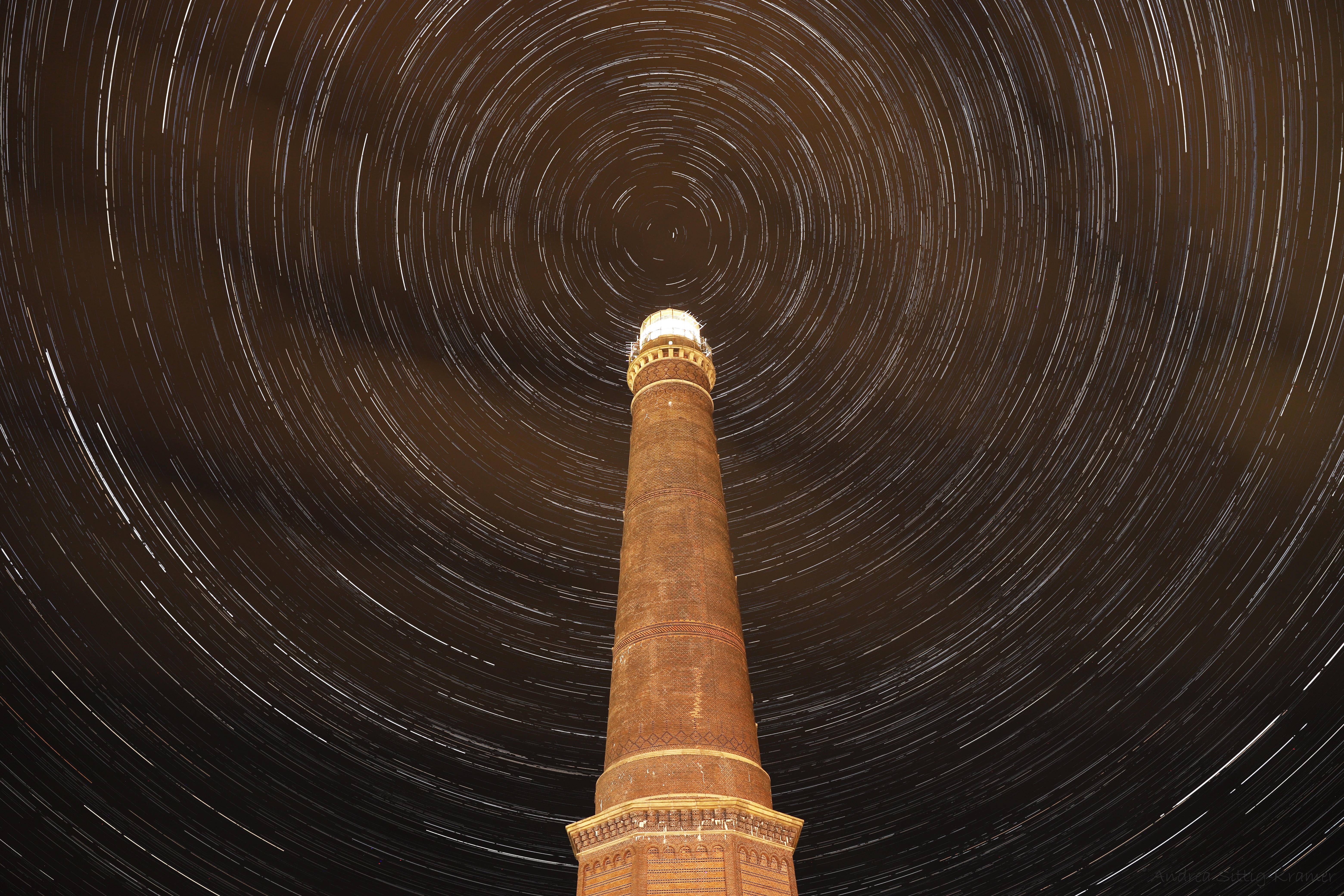 Am 4. August 2021 war der nächtliche Himmel über der Ostfriesischen Insel Borkum nahezu sternenklar. Ich nutzte die fünfstündige Phase der astronomischen Dämmerung für ein Sternen-Strichspurenbild am Neuen Leuchtturm. Der gut 60 Meter hohe Turm wurde 1891 aus Ziegelsteinen gebaut. Das nächtliche Leuchtfeuer weist der Schifffahrt den Weg in die Mündung der Ems. Ich positionierte meine Kamera so, dass Polarstern genau über der Turmspitze zu stehen scheint. Die knapp 250 Einzelfotos habe ich mit dem Programm »Startrails« zu einem Bild zusammengefügt. Die Gesamtbelichtungszeit beträgt knapp eineinhalb Stunden.
