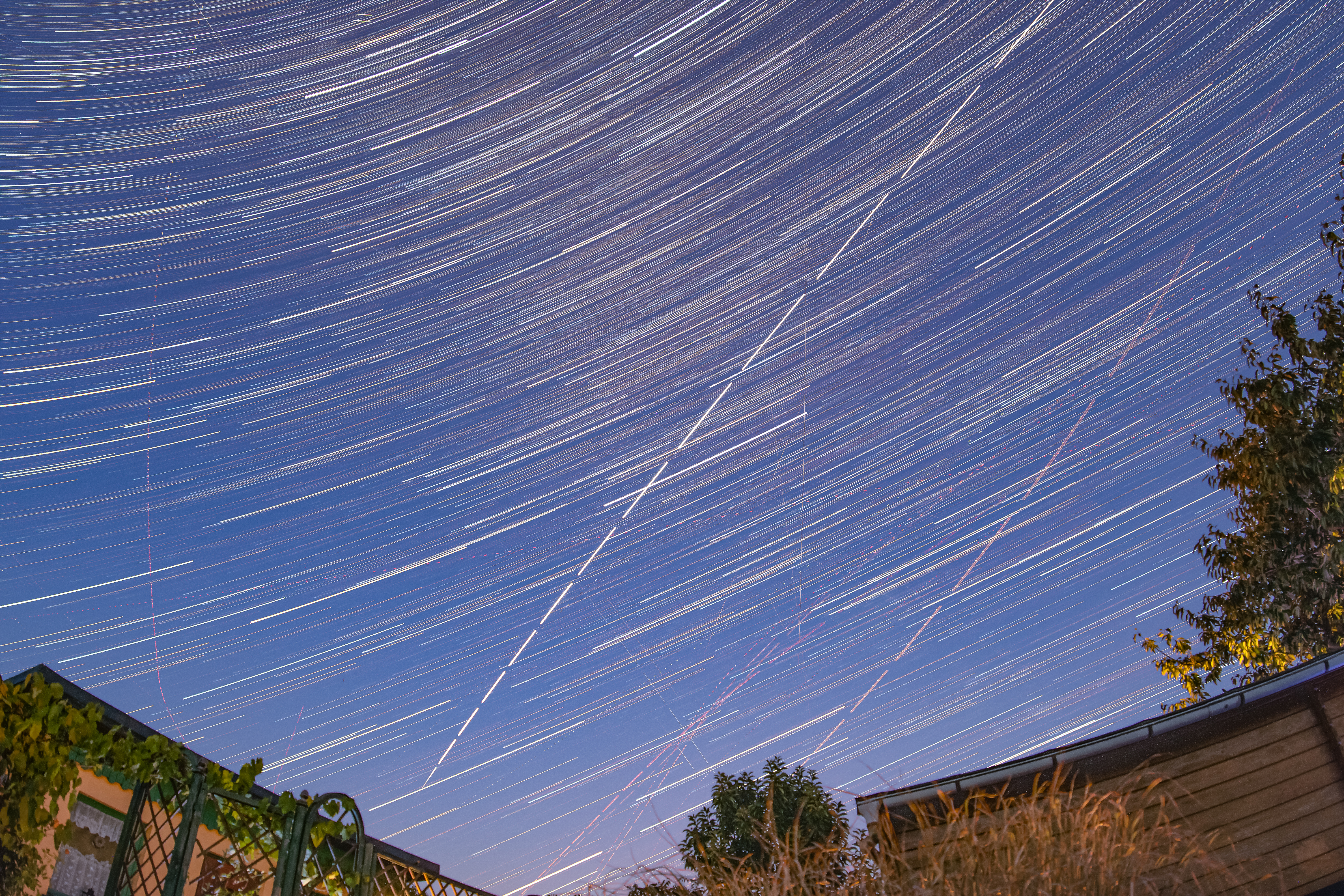 Leserbilder Astronomie: Startrails mit Satelliten, Flugzeugen und der Raumstation