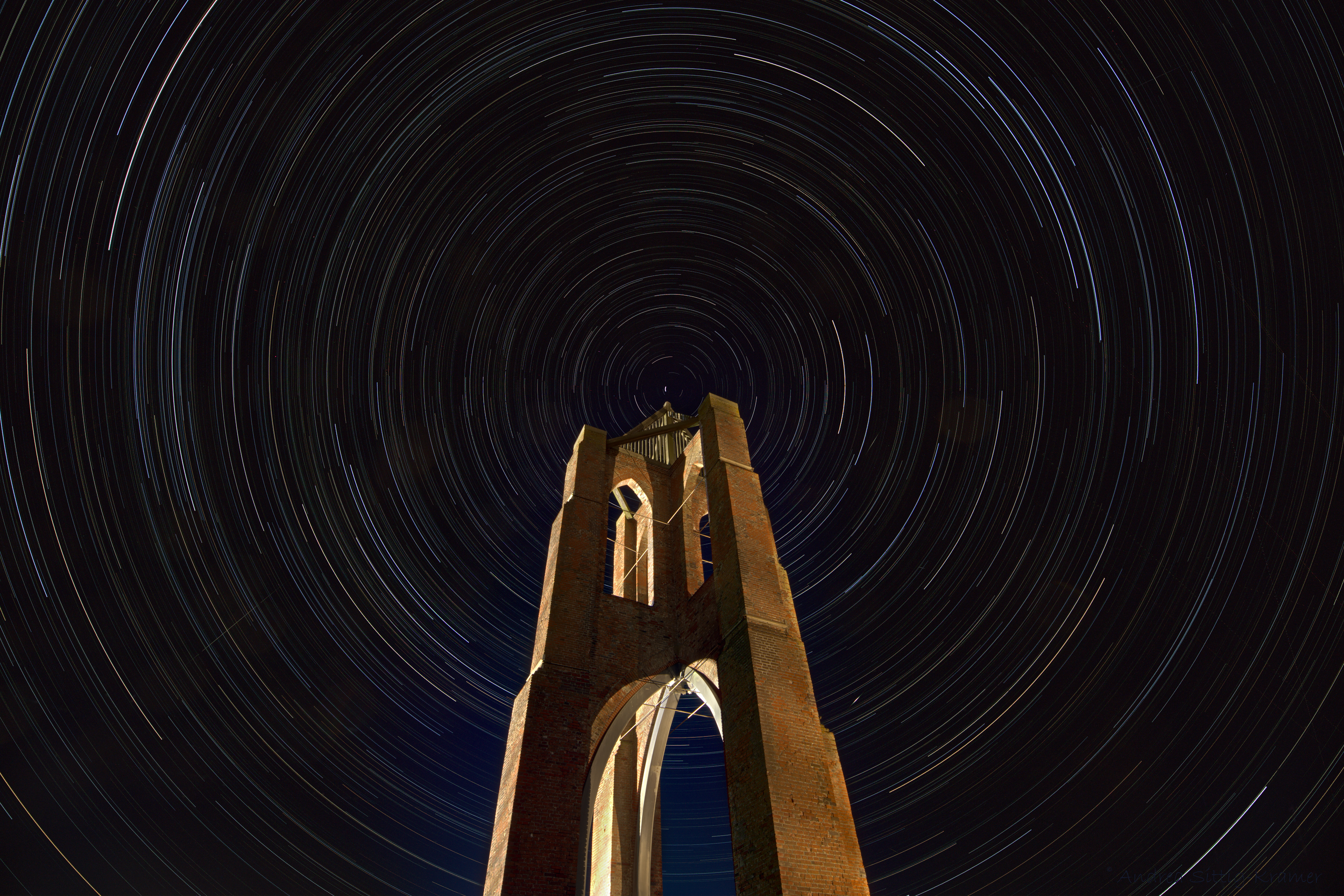 Diese Woche sind auf Borkum ideale Wetterbedingungen für die nächtliche Fotografie: Sternenklarer Himmel, wenig Wind und keine eisigen Temperaturen. Am 15. März 2025 suchte ich daher am Großen Kaap nach geeigneten Fotomotiven mit himmlischen Motiven. Das ehemalige Seezeichen ist heute ein Wahrzeichen der Nordseeinsel und wird nachts prächtig illuminierten. Ideal für ein Sternstrichspuren-Bild! Ich positionierte meine Kamera so, dass der Nordstern exakt über der Spitze der gut 23 m hohen Bake zu stehen schien. Die 270 Einzelfotos habe ich mit dem Programm Sequator zu einem Summenbild zusammengefügt. Die Belichtungszeit beträgt insgesamt 2 Stunden 15 Minuten. In früheren Zeiten peilten die Seeleute diese wichtige Navigationshilfe an – heute fokussieren die Inselbesucher das imposante Klinkerbauwerk mit ihren Kameras.