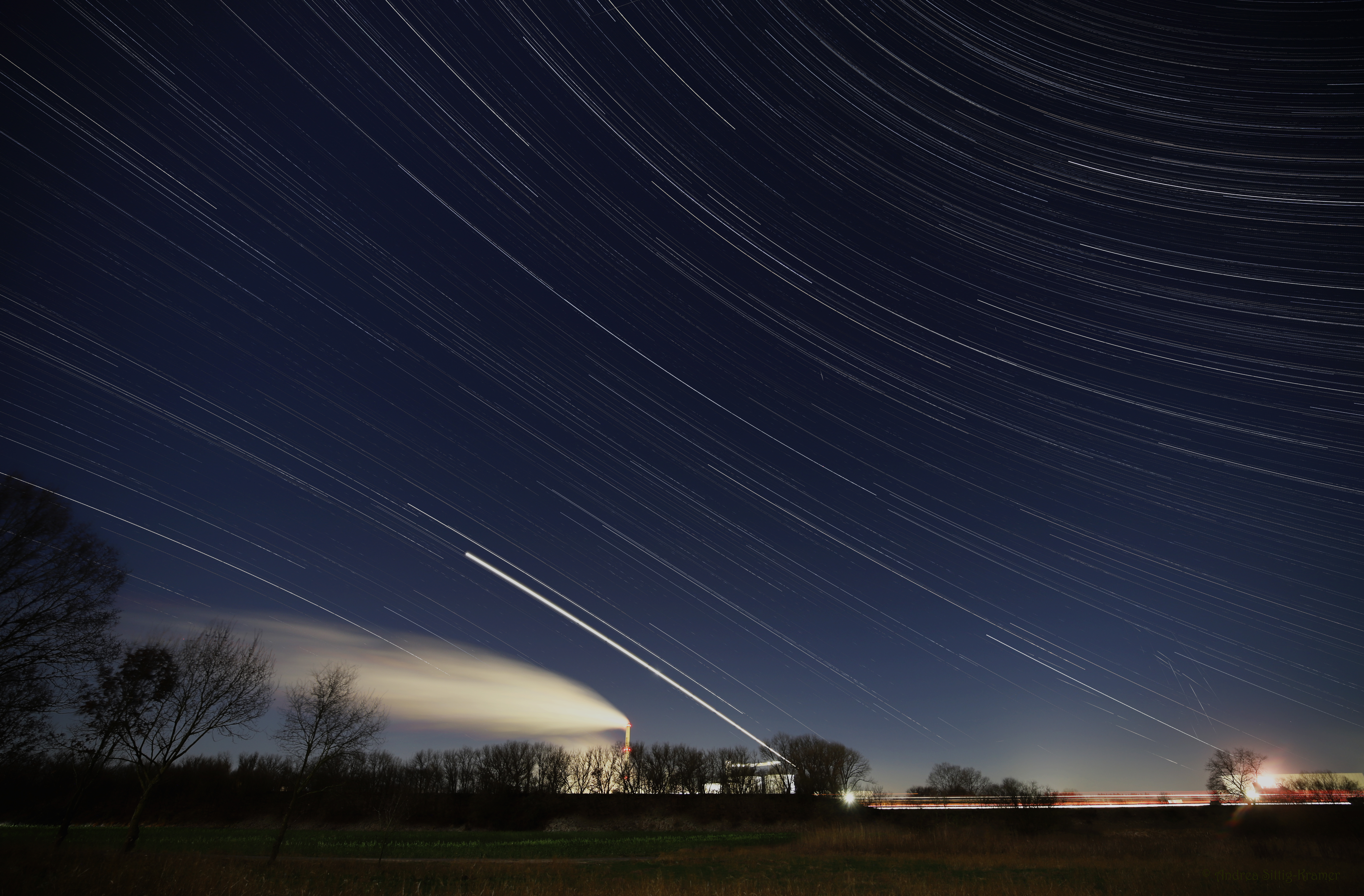 Leserbilder Astronomie: Sternspuren über der Zuckerfabrik Uelzen am 11. Januar 2025