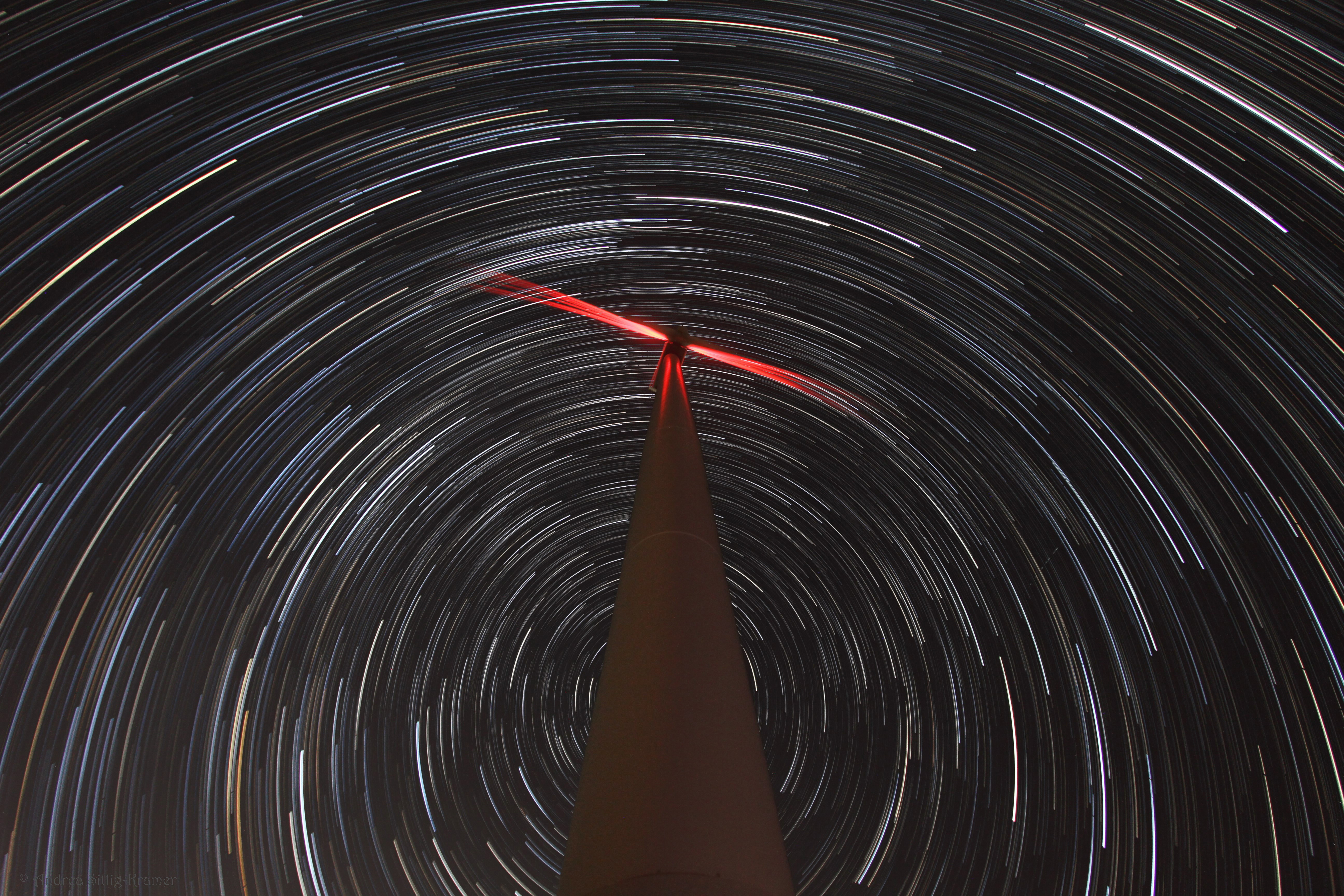 Leserbilder Astronomie: Startrails um Windkraftrad bei Uelzen