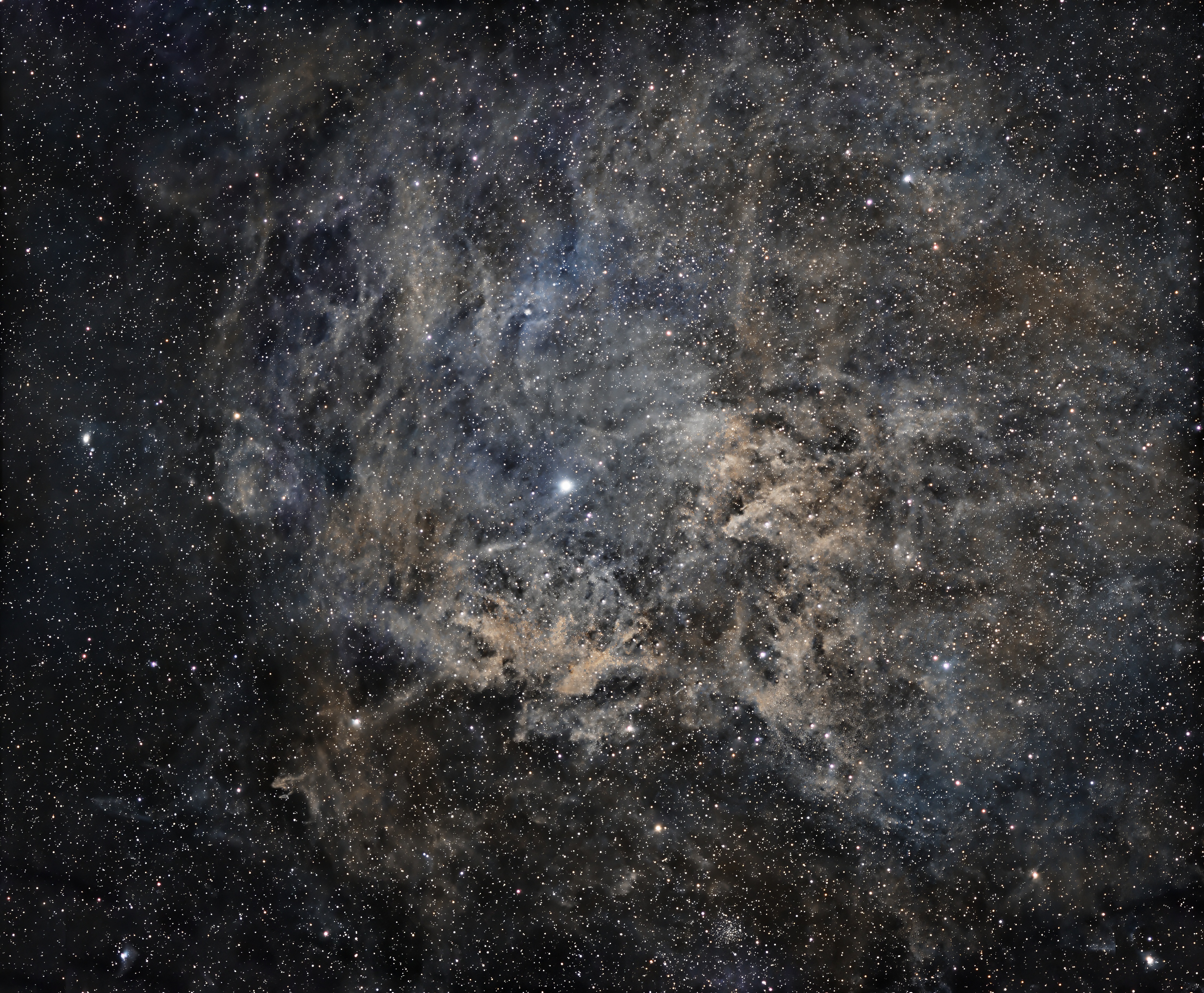 Die Staubwolken von Polaris. Unser Polarstern ist, abgesehen von seiner prominenten Stellung am Himmel, eigentlich sehr unscheinbar, kein großer Nebel, keine Galaxie. Aber wenn man genauer hinschaut und das heißt in der Astrofotografie belichten, belichten und nochmal belichten, dann offenbaren sich fantastische, Lichtjahre große Staubwolken, die ich hier mit sieben Stunden (verteilt auf drei Nächte) Belichtung einfangen konnte.