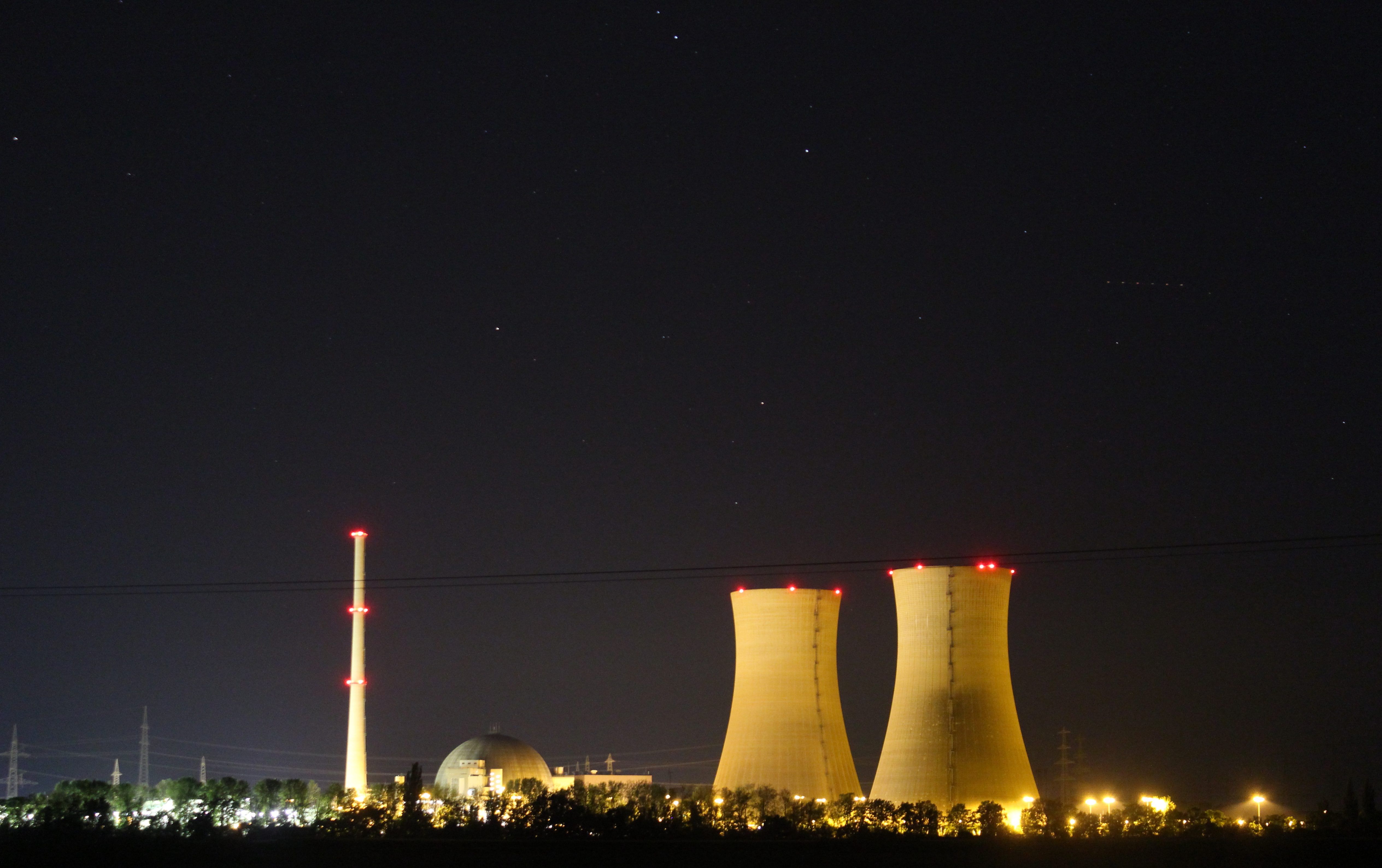 Leserbilder Astronomie: Sternbild Rabe über dem Kernkraftwerk Grafenrheinfeld