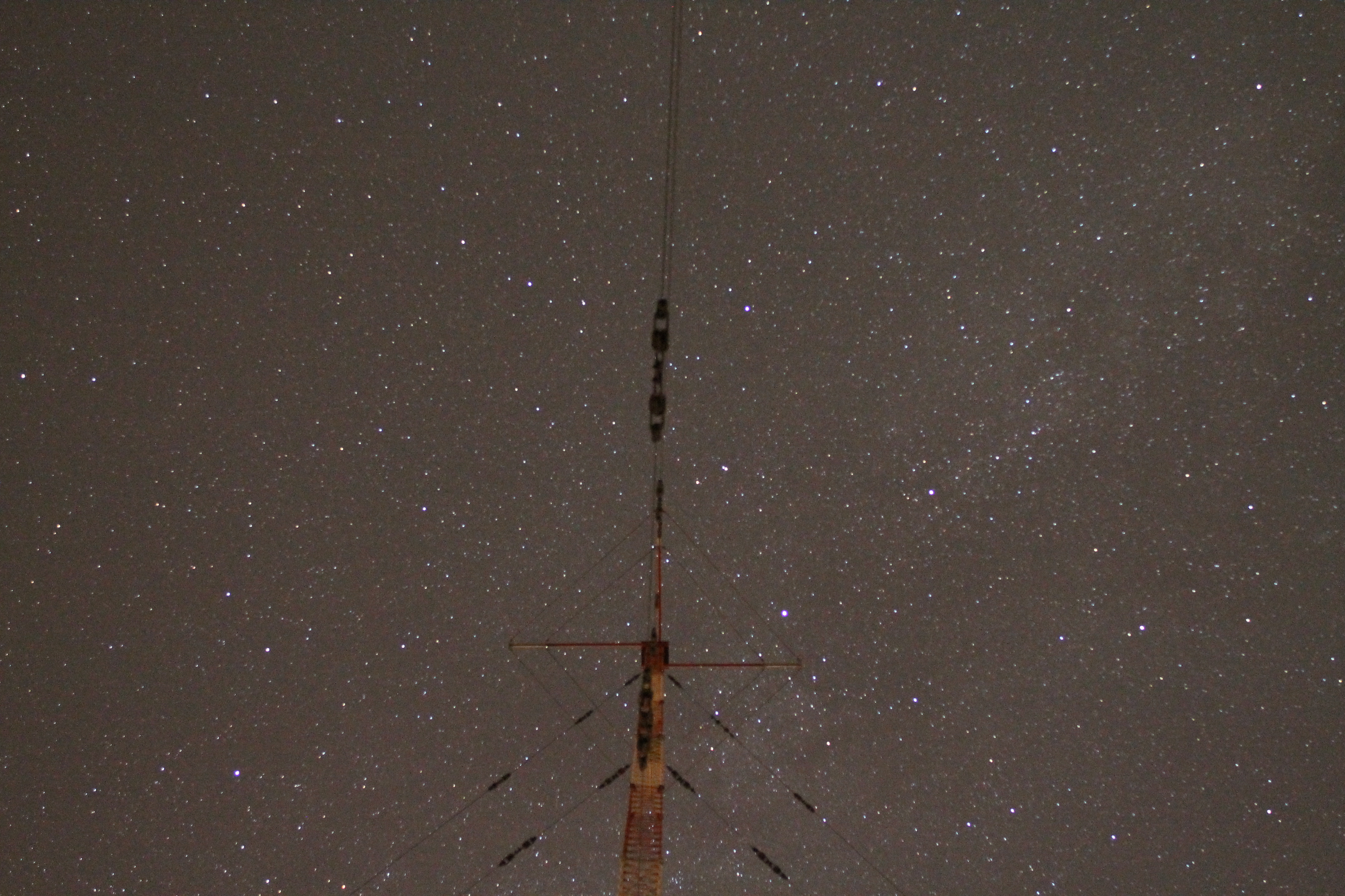 Sternbild Schwan mit Milchstraße, rechts vom Sendemast des Mittelwellensenders Ditzingen-Hirschlanden