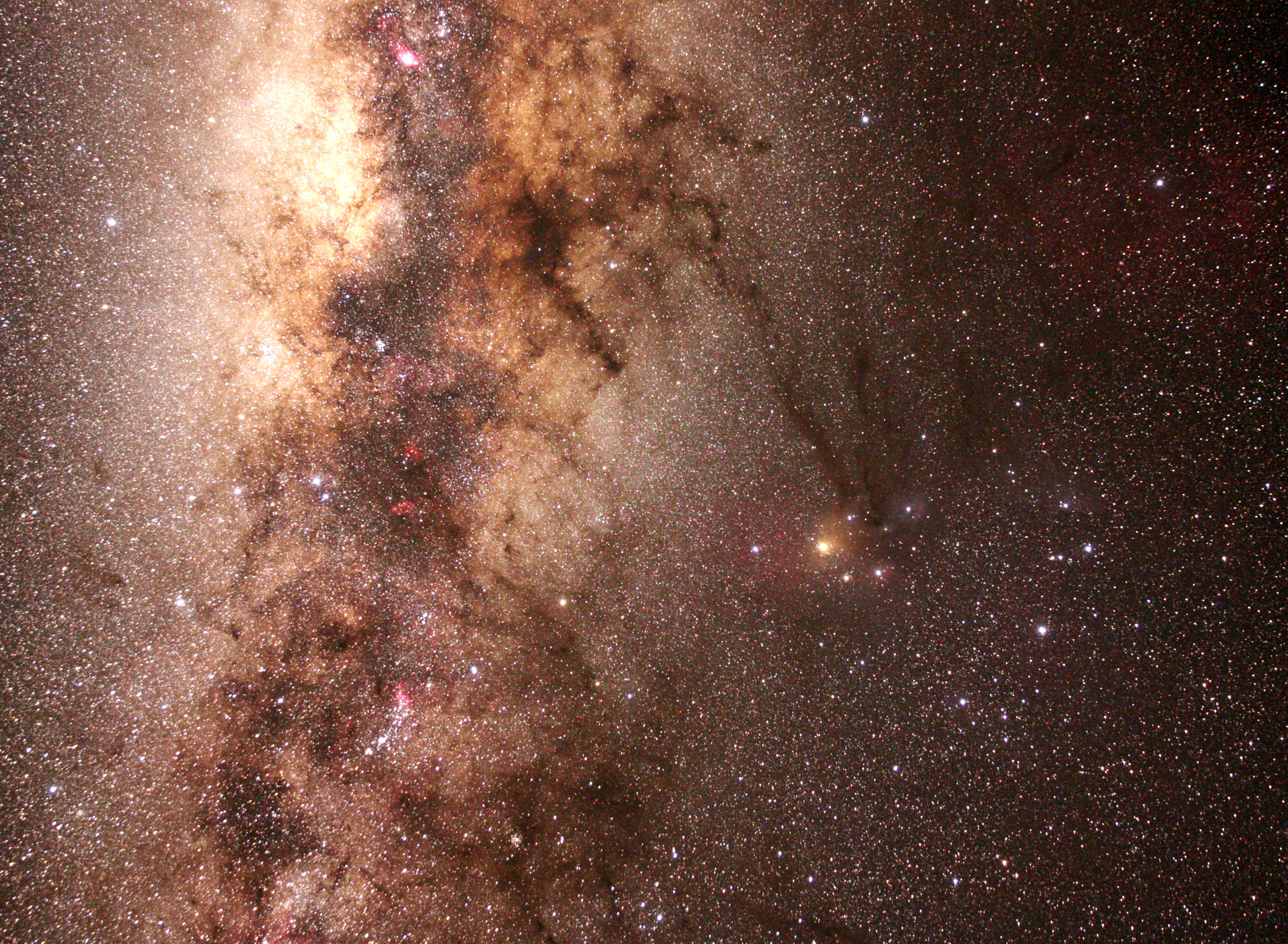 Wie in meinem Bild vom Schützen und der Südlichen Krone, so lässt sich auch hier das fotografierte Sternbild kaum ausmachen - so prachtvoll und nahezu erdrückend ist die Dominanz der Milchstraße am herrlichen namibischen Winterhimmel, wenn der Skorpion beinahe im Zenit steht.