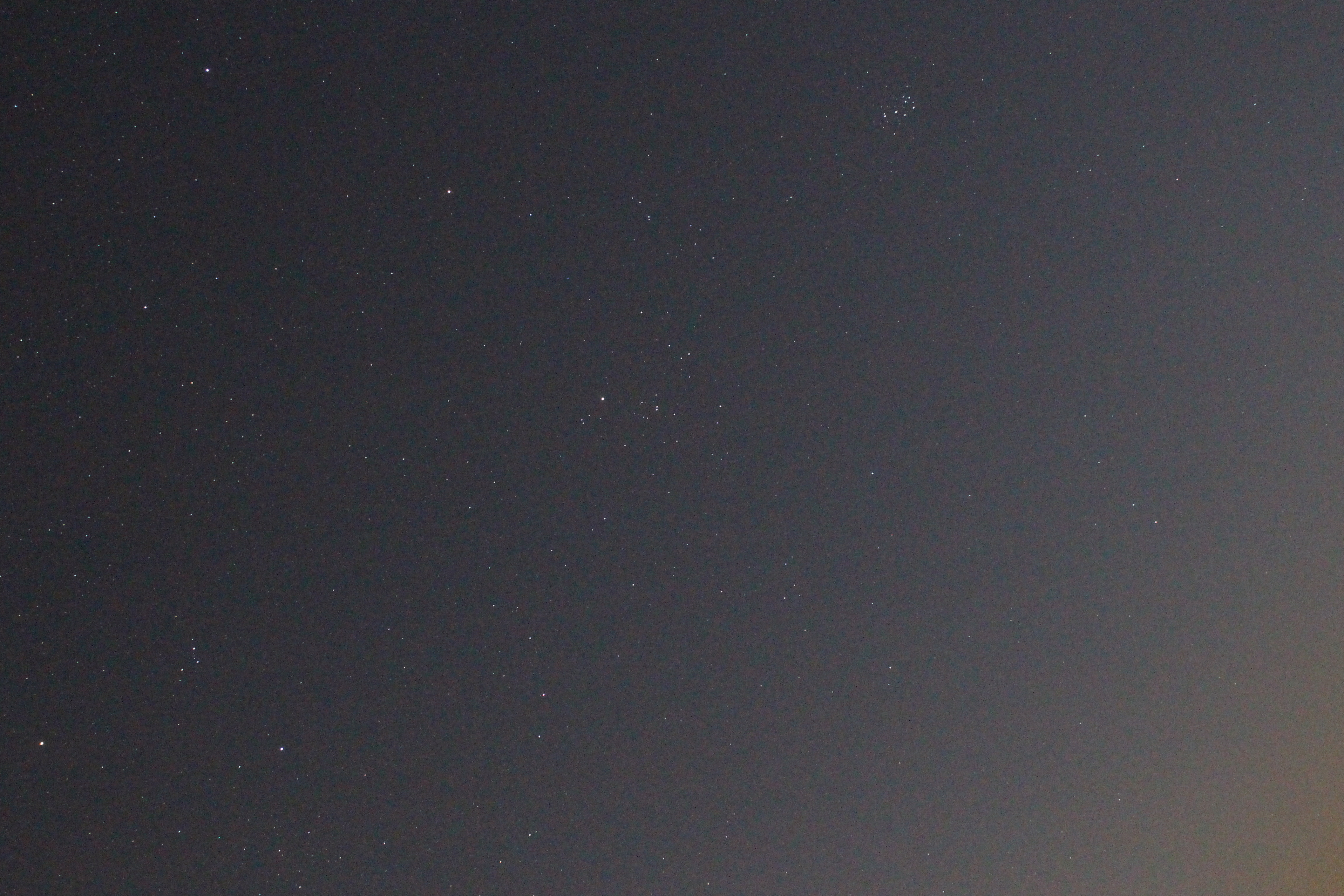 Sternbild Stier mit dem roten Planeten Mars. Links unten erkennt man auch Beteigeuze und Bellatrix.