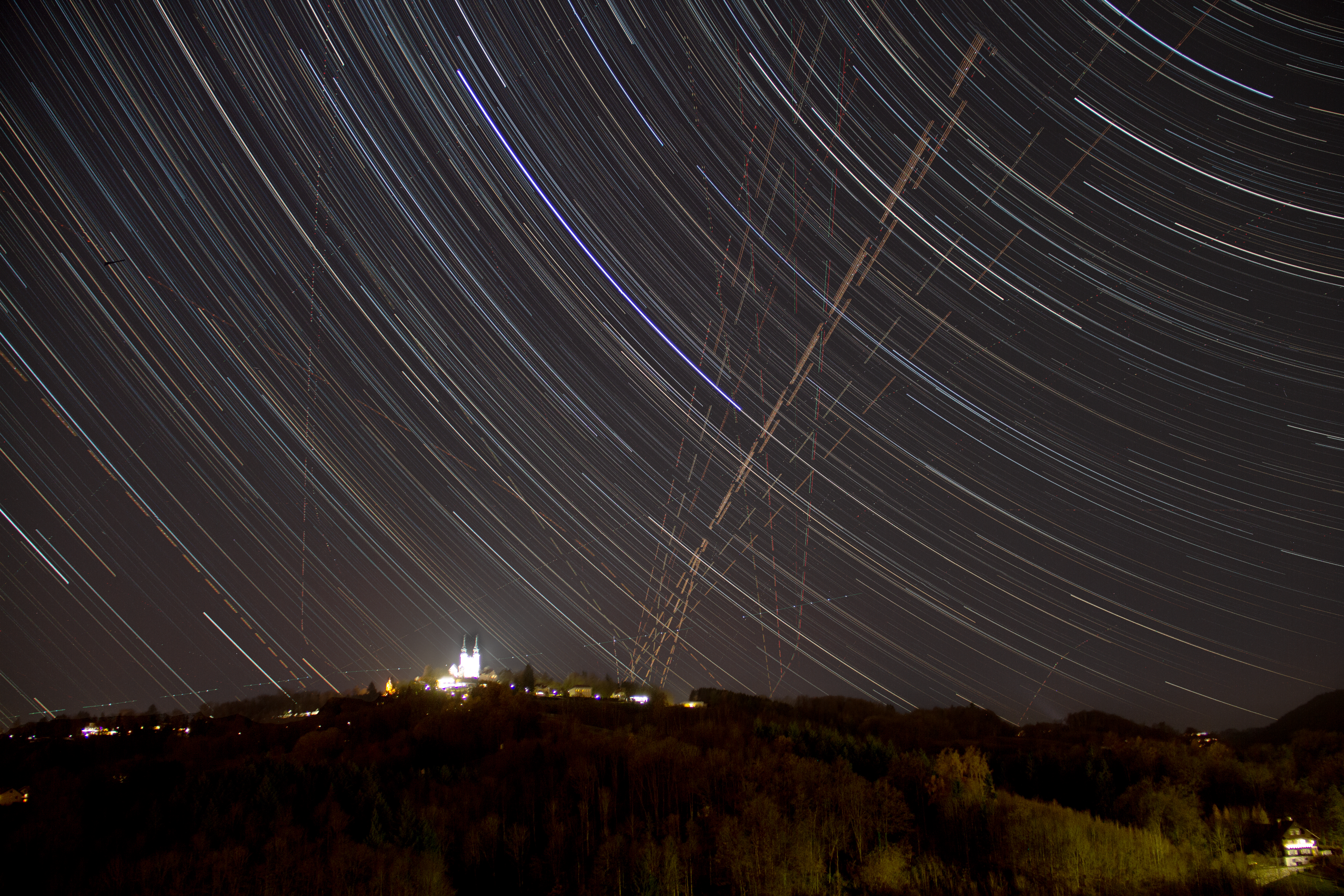 Leserbilder Astronomie: Sterne und Flugzeuge über dem Pöstlingberg in Linz