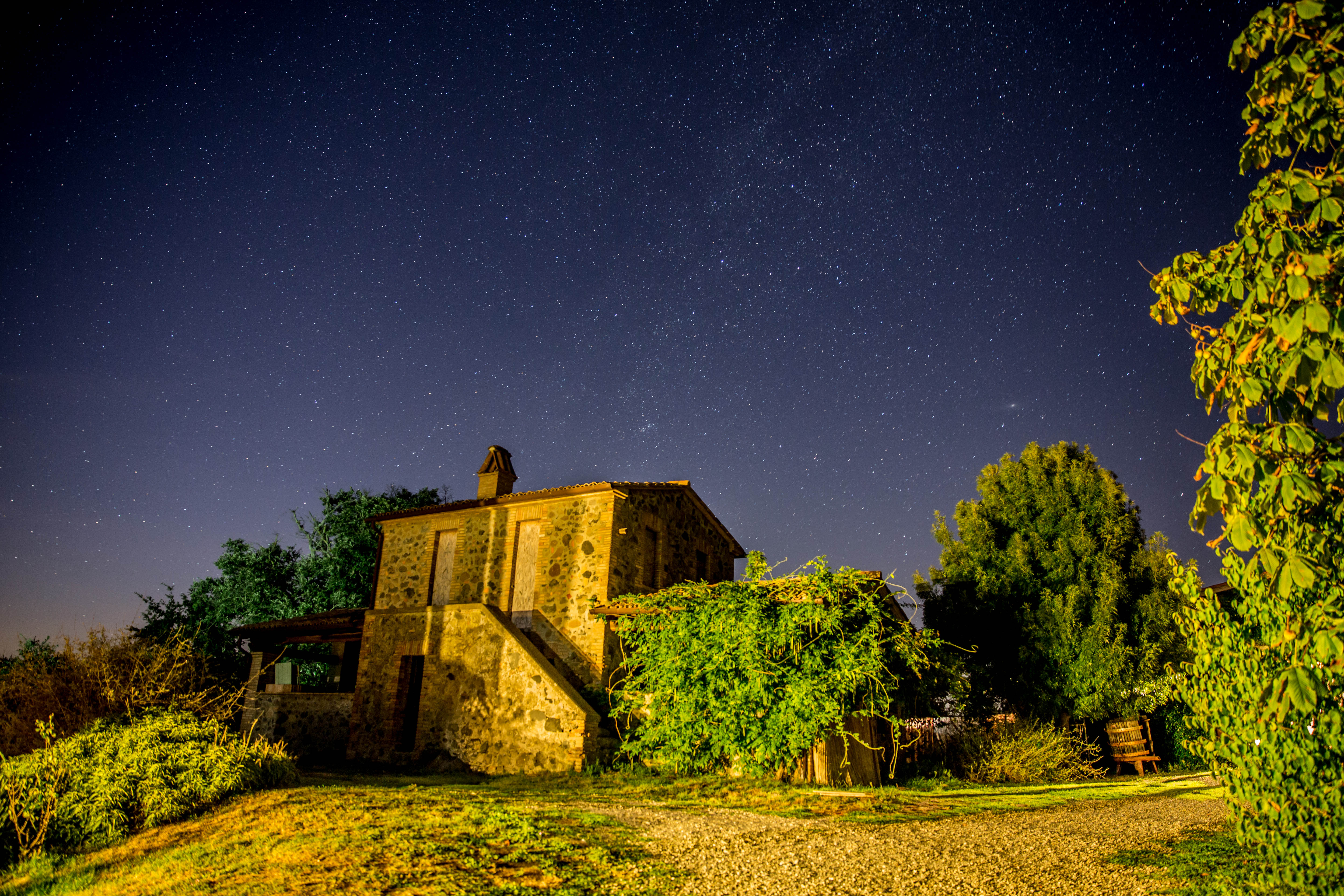 Der Sternenhimmel über der italienischen Region Umbrien zeigte sich im August oft von seiner besten Seite: Diese Aufnahme entstand auf dem Gelände des Agriturismo Pulicaro (www.pulicaro.it) und zeigt ein altes, leerstehendes Bauernhaus. Über dem Haus kann man h und Chi Persei erkennen, rechts über dem Baum unsere große Nachbarin, die Andromedagalaxie. Ein Blick 2,5 Millionen Jahre in die Vergangenheit …
