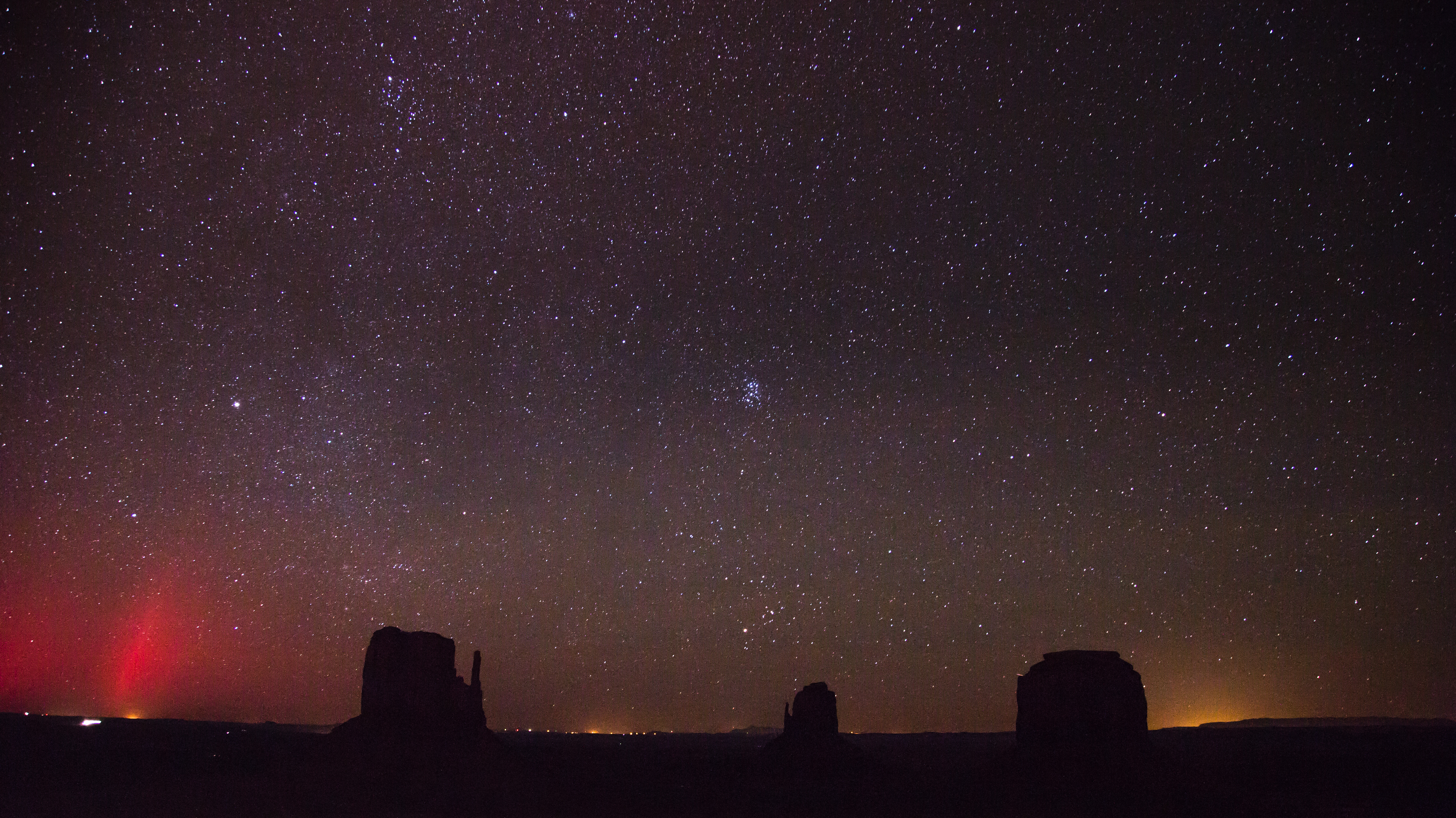Bei einer Übernachtung im "The View Hotel" im Monument Valley ist es mir gelungen den Sternenhimmel mit Polarlichtern zu fotografieren. Ein Timelapse-Video ist hier auch entstanden: https://vimeo.com/133399092 Es bleibt unvergesslich, gerade zu diesem seltenen Zeitpunkt an diesem wunderschönen Ort gewesen zu sein.