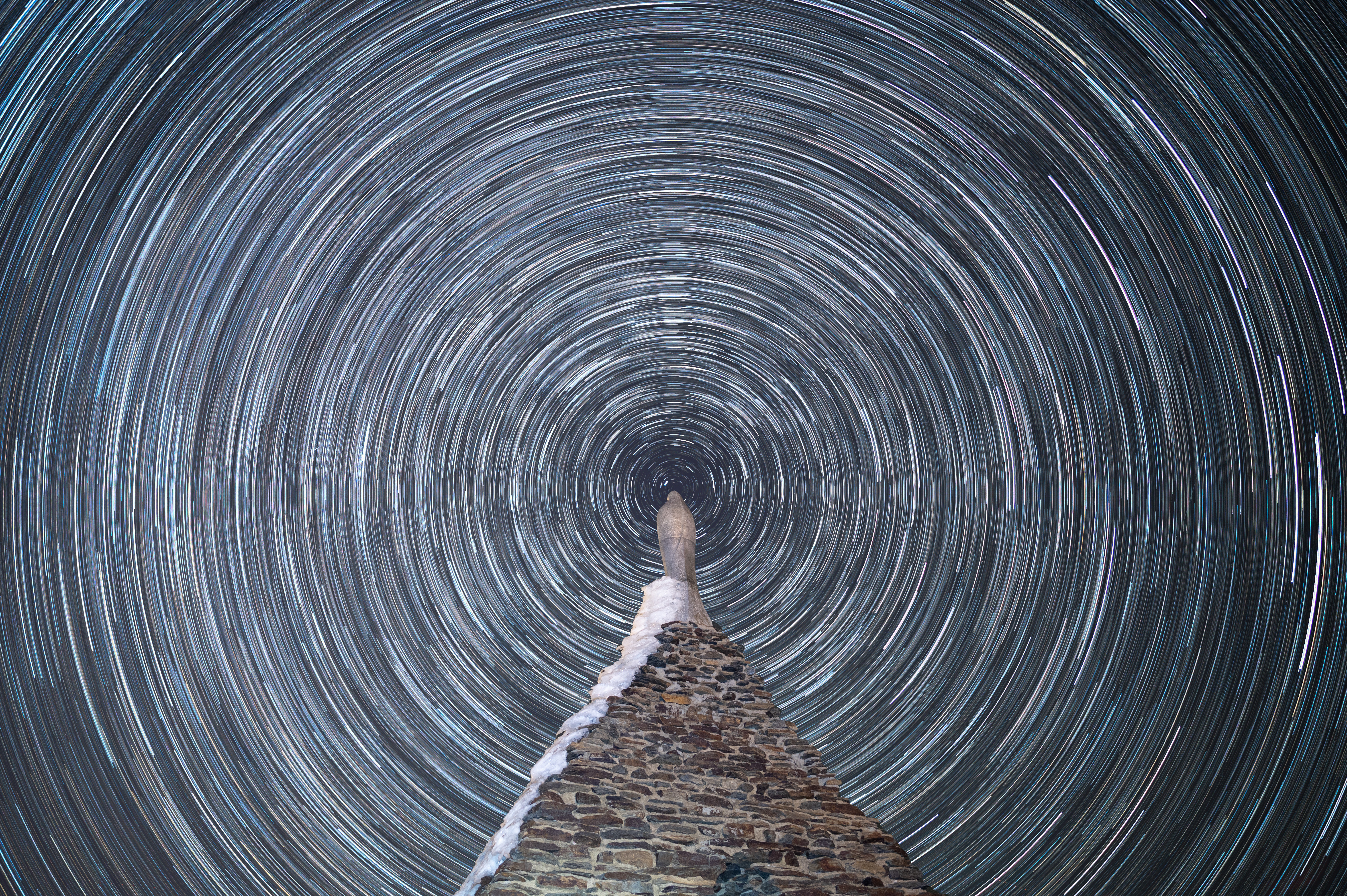 Im März 2025 war ich im Urlaub nahe dem Gebirge Sierra Nevada. Natürlich durfte die Kamera mit Montierung nicht fehlen. Leider fiel mir am ersten Abend auf einer Höhe von knapp 2500 Meter auf, dass ich die Batterien für die Montierung vergessen hatte. Schnell musste ich mir eine Alternative überlegen und so entschied ich mich für die Aufnahme von Sternenspuren mit dem der Kapelle namens Virgen de las Nieves im Vordergrund - der Dreh- und Angelpunkt.