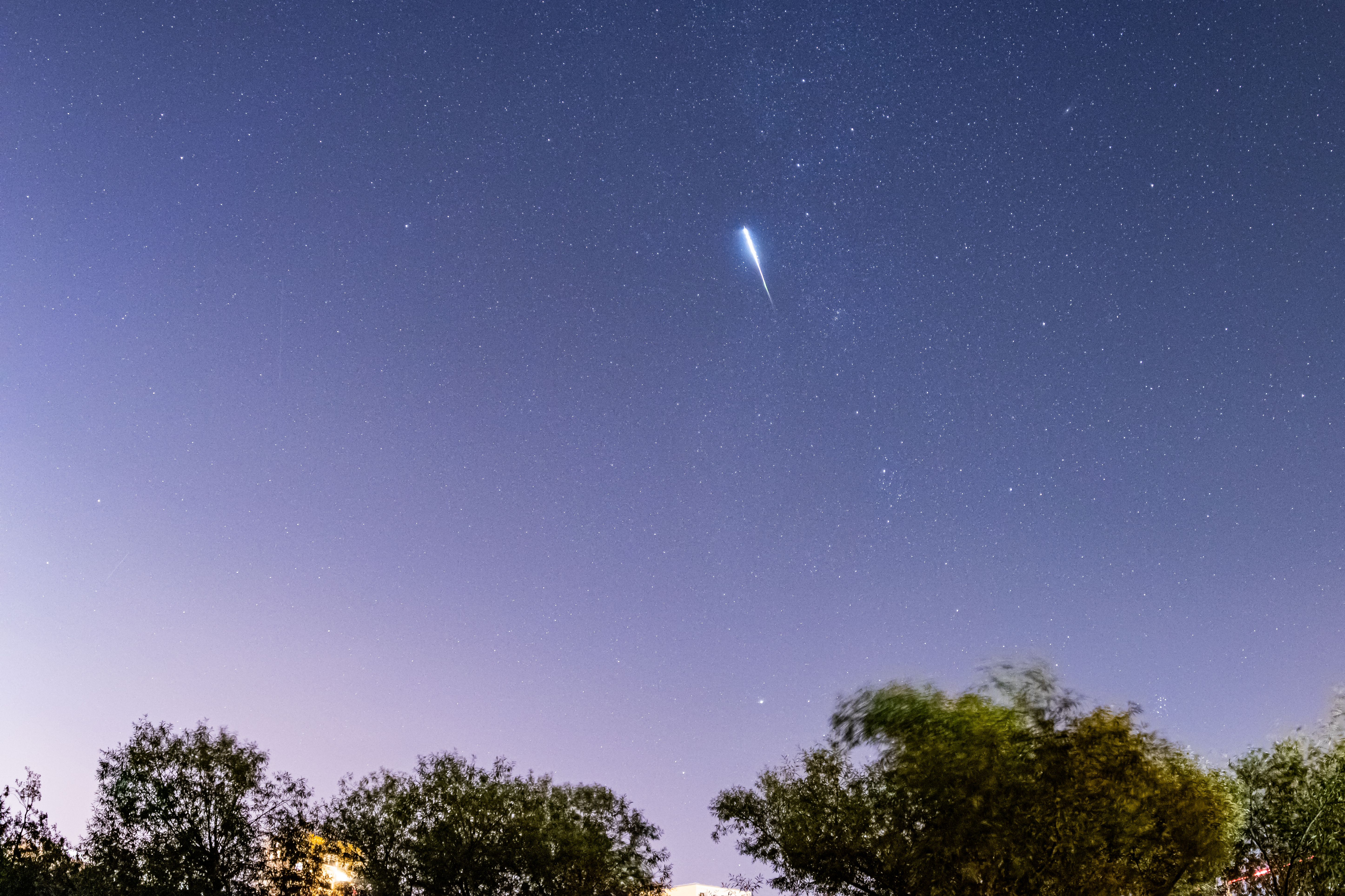 Perseiden 2021: Eine sehr helle Sternschnuppe über Dresden. Dieses Jahr war kaum etwas los. Nur wenige Sternschnuppen waren zu sehen.
