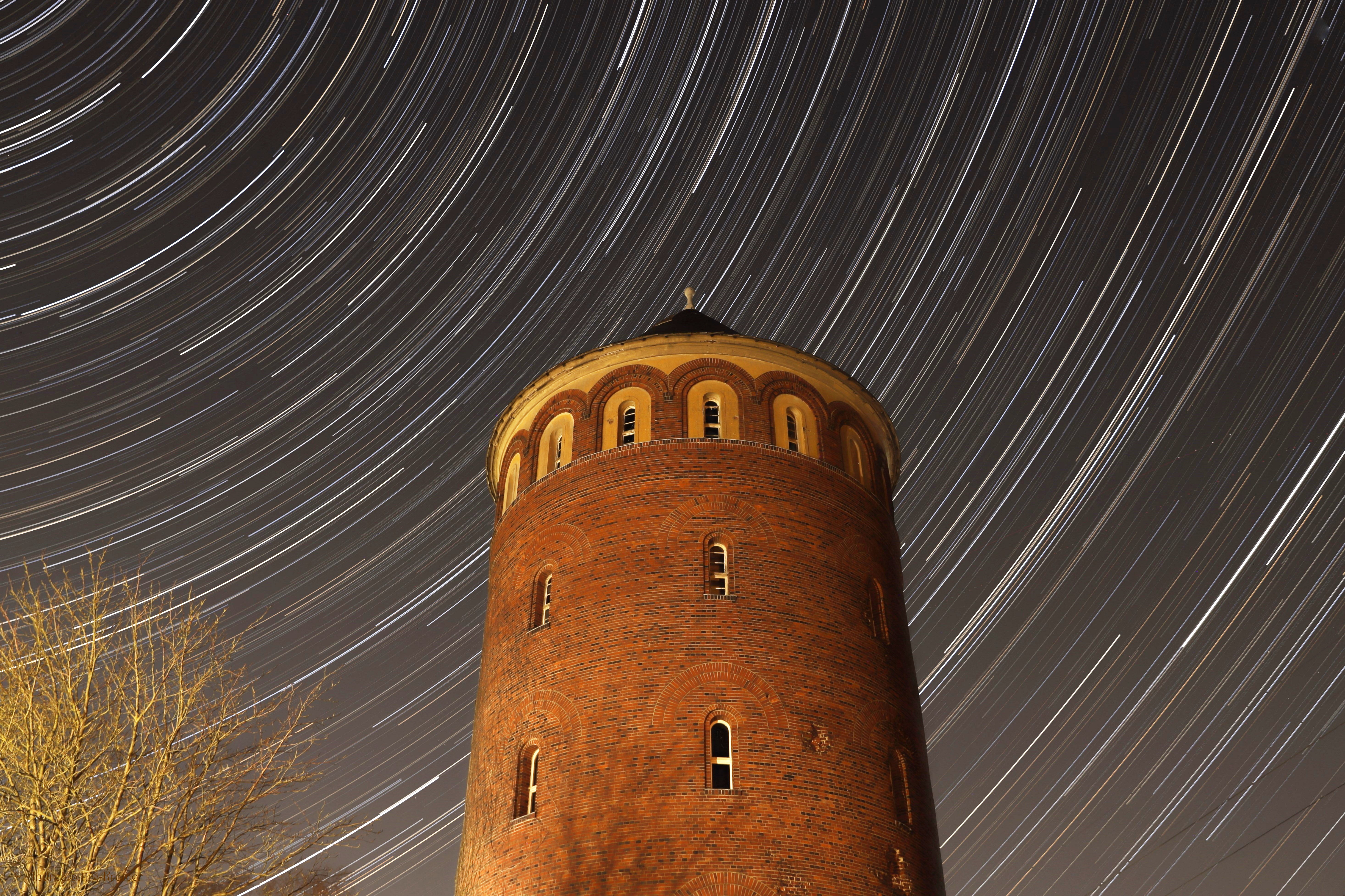 Leserbilder Astronomie: Sternspuren über dem Wasserturm Uelzen