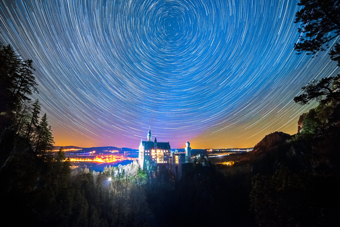 Leserbilder Astronomie: Sternspuren über Schloss Neuschwanstein